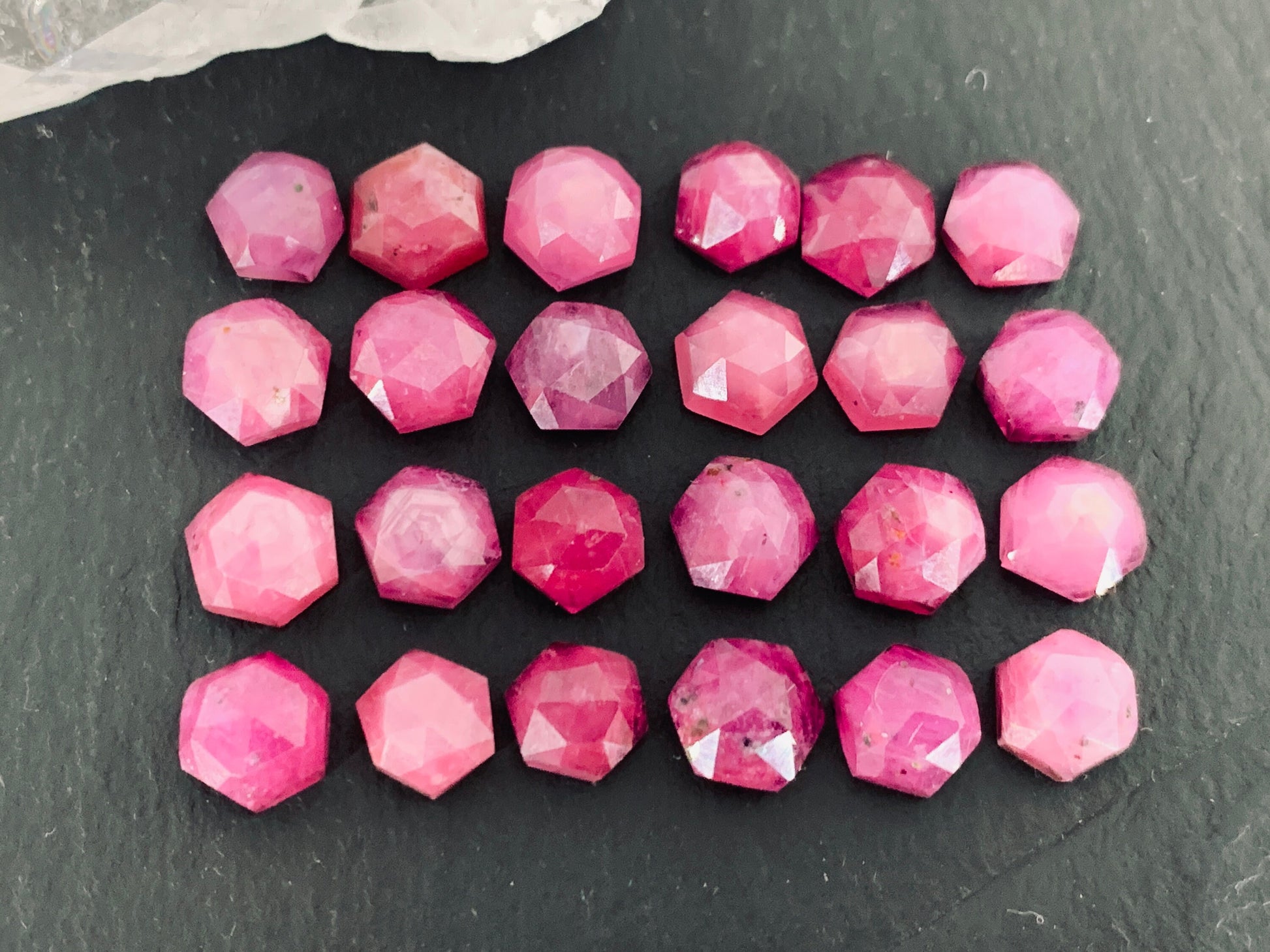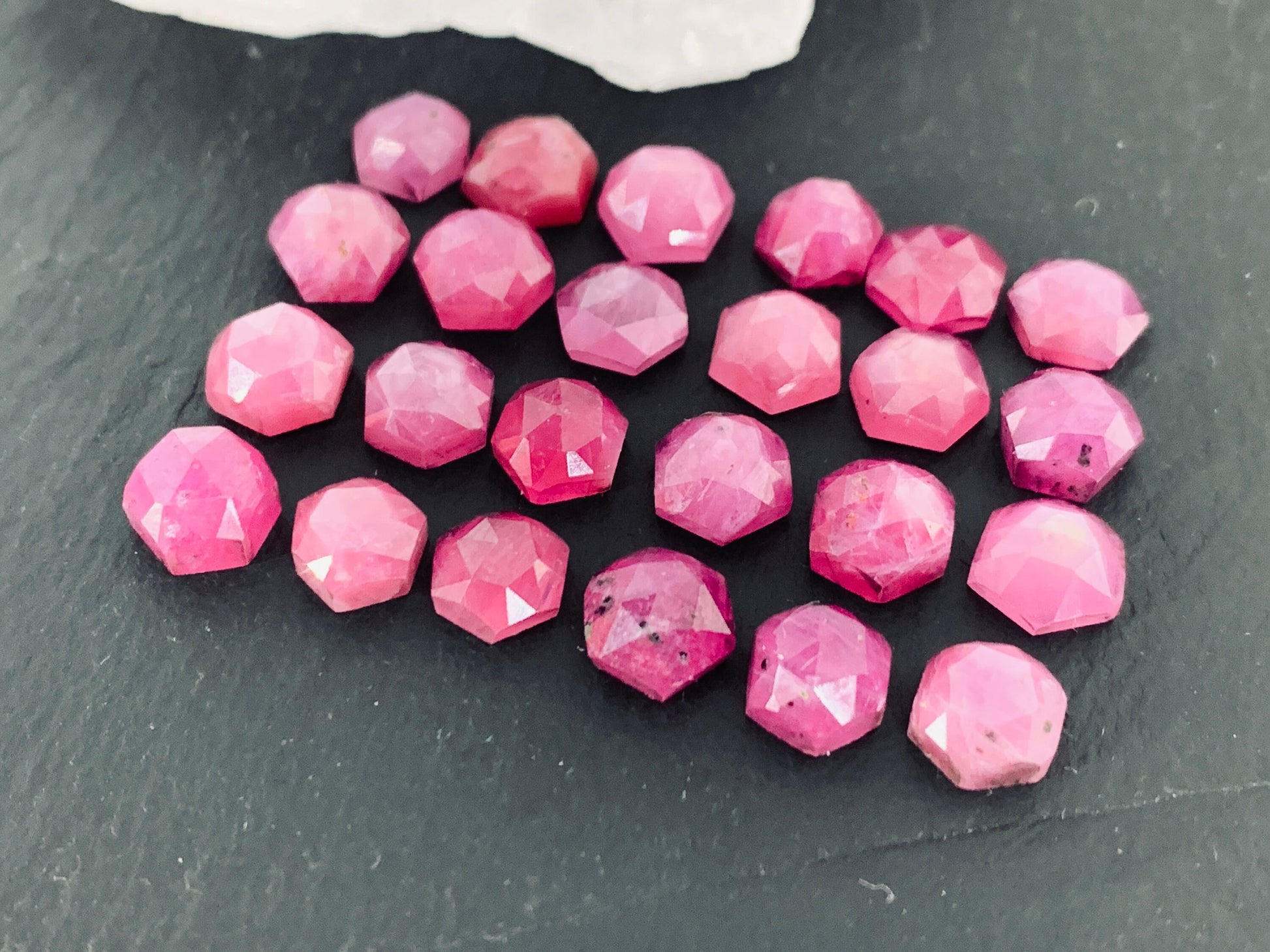 Faceted Pink Sapphire hexagon 6mm cabochon