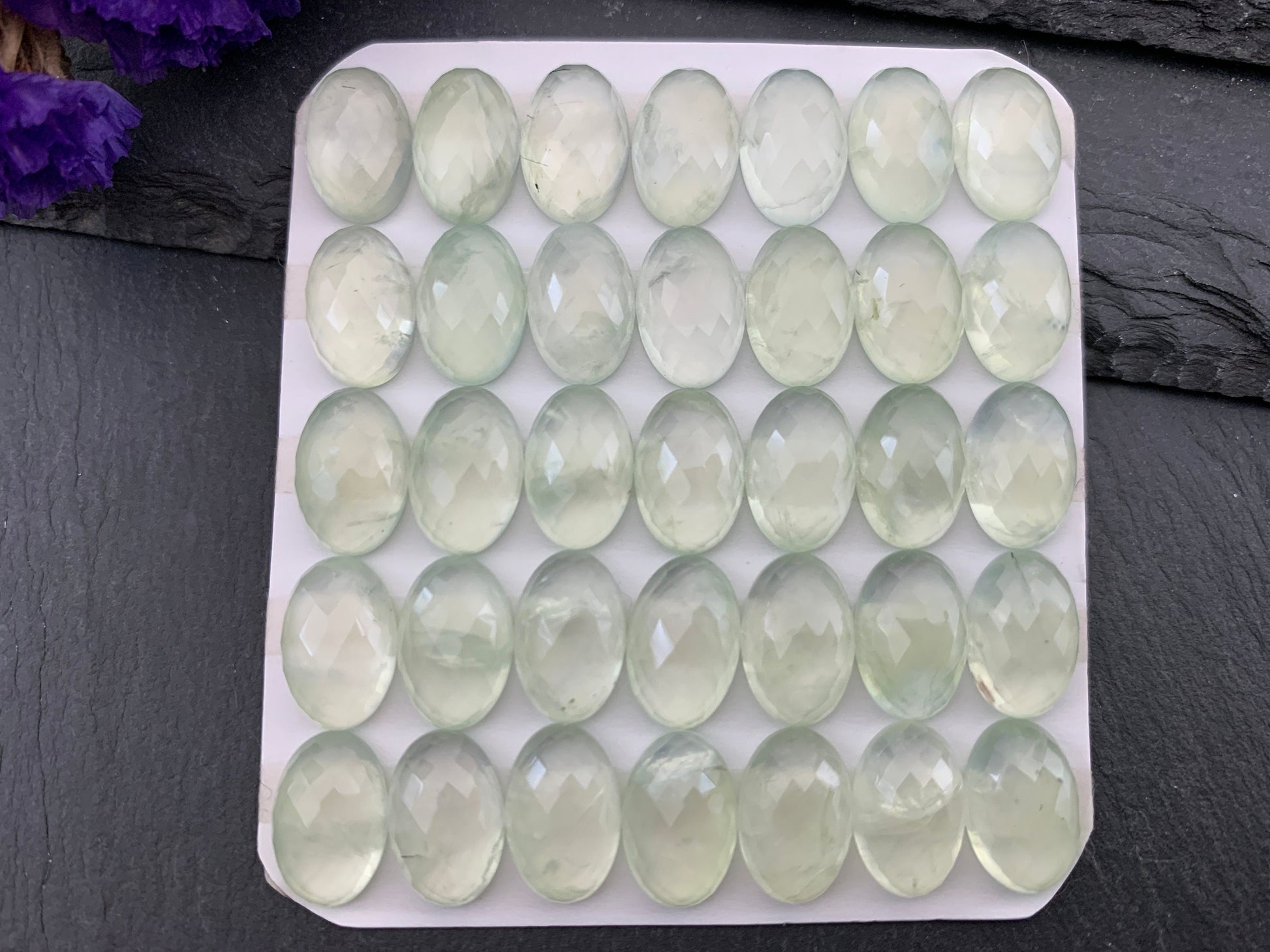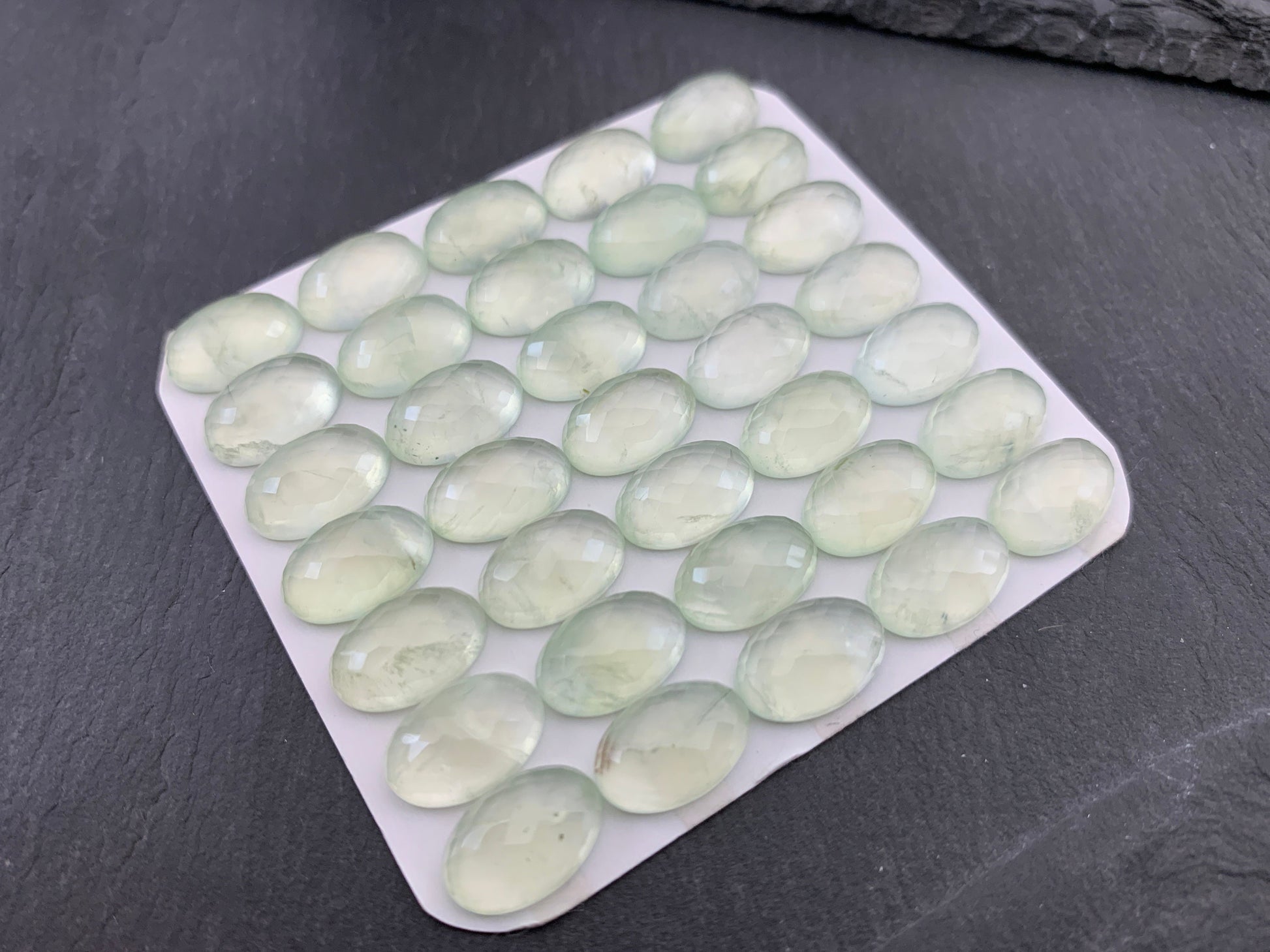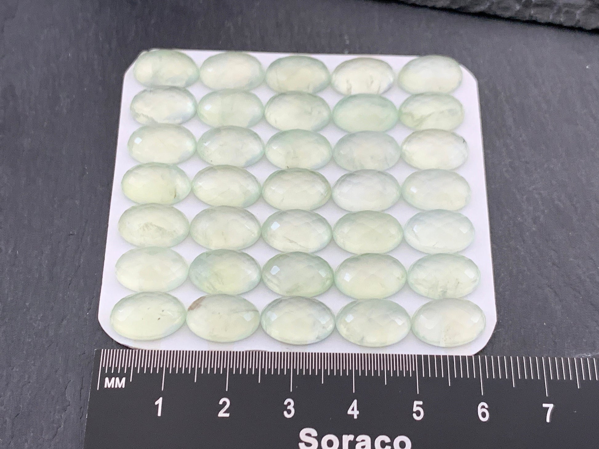 Faceted Prehnite oval 8x12mm cabochon - Calibrated cabochons