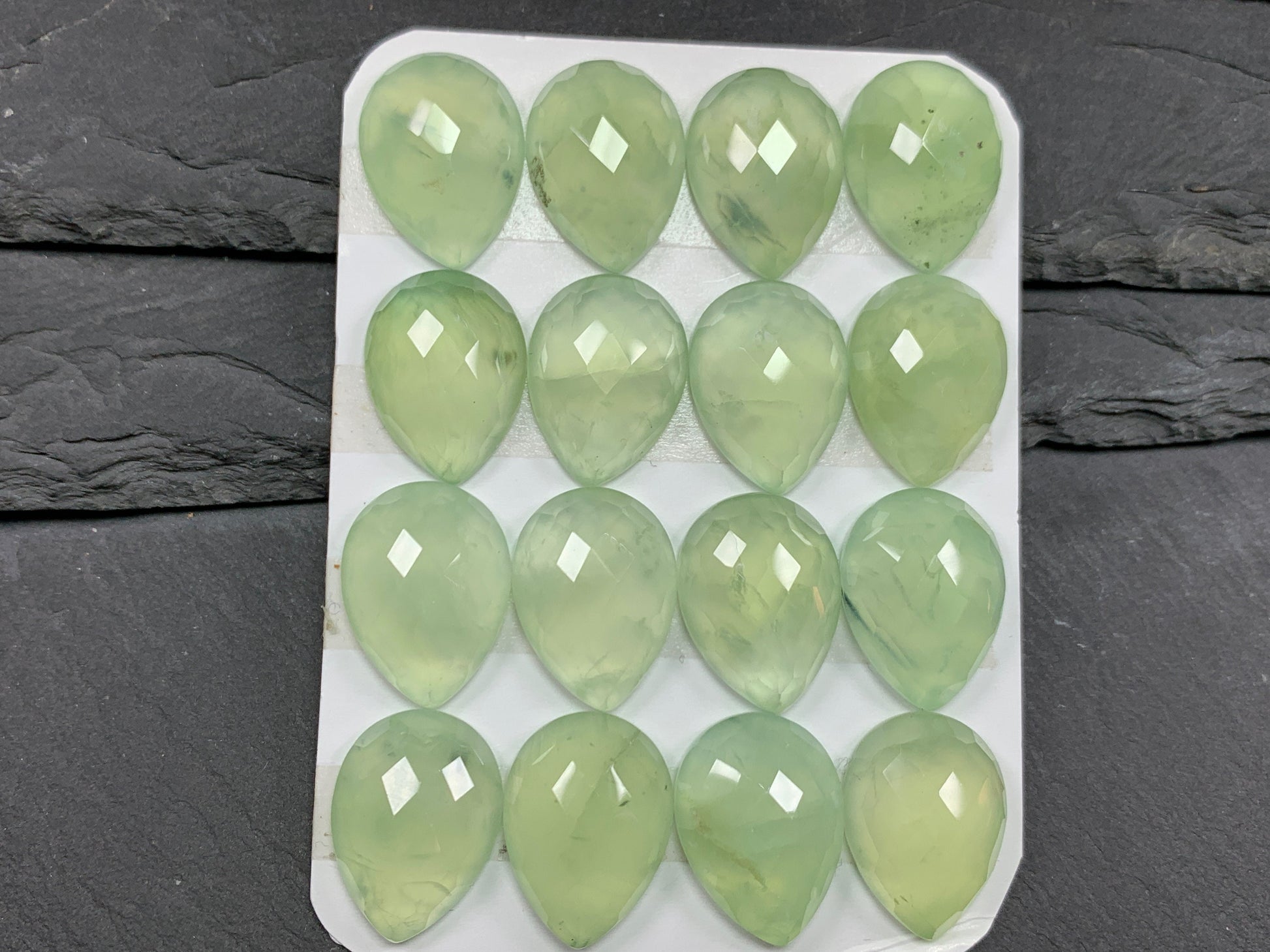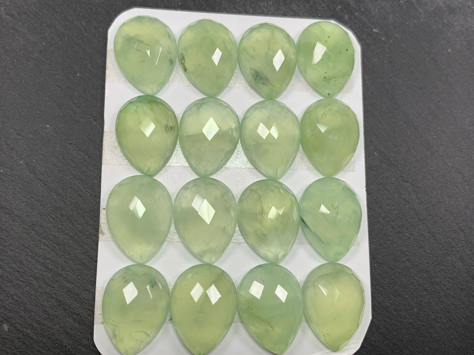 Faceted Prehnite pear 15x20mm cabochon - Calibrated cabochons