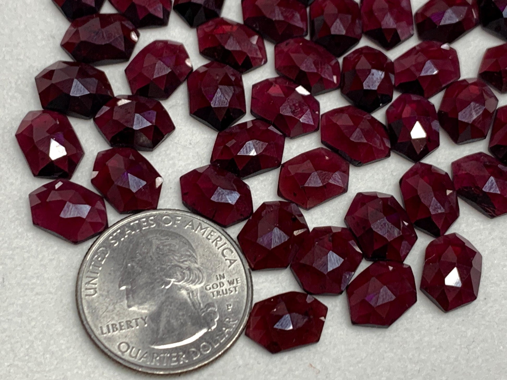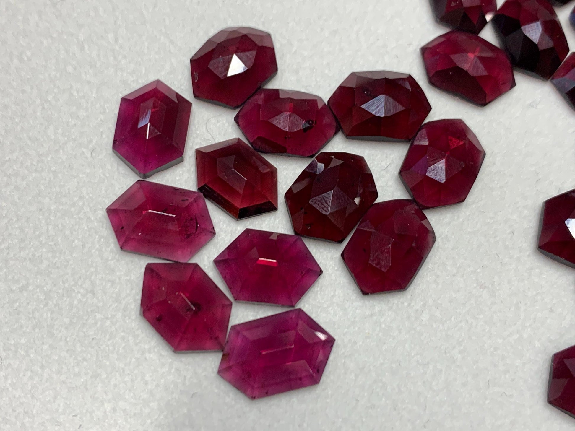 Faceted Rhodolite Garnet long hexagon 8x12mm cabochon