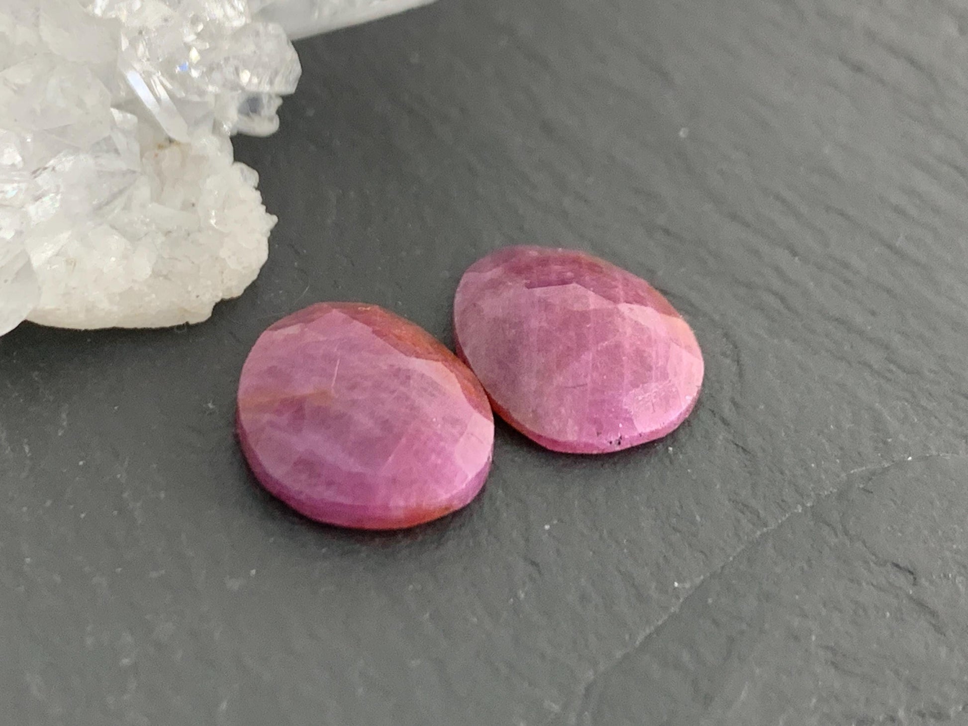 Faceted Ruby pair 10x12x2.5mm cabochon