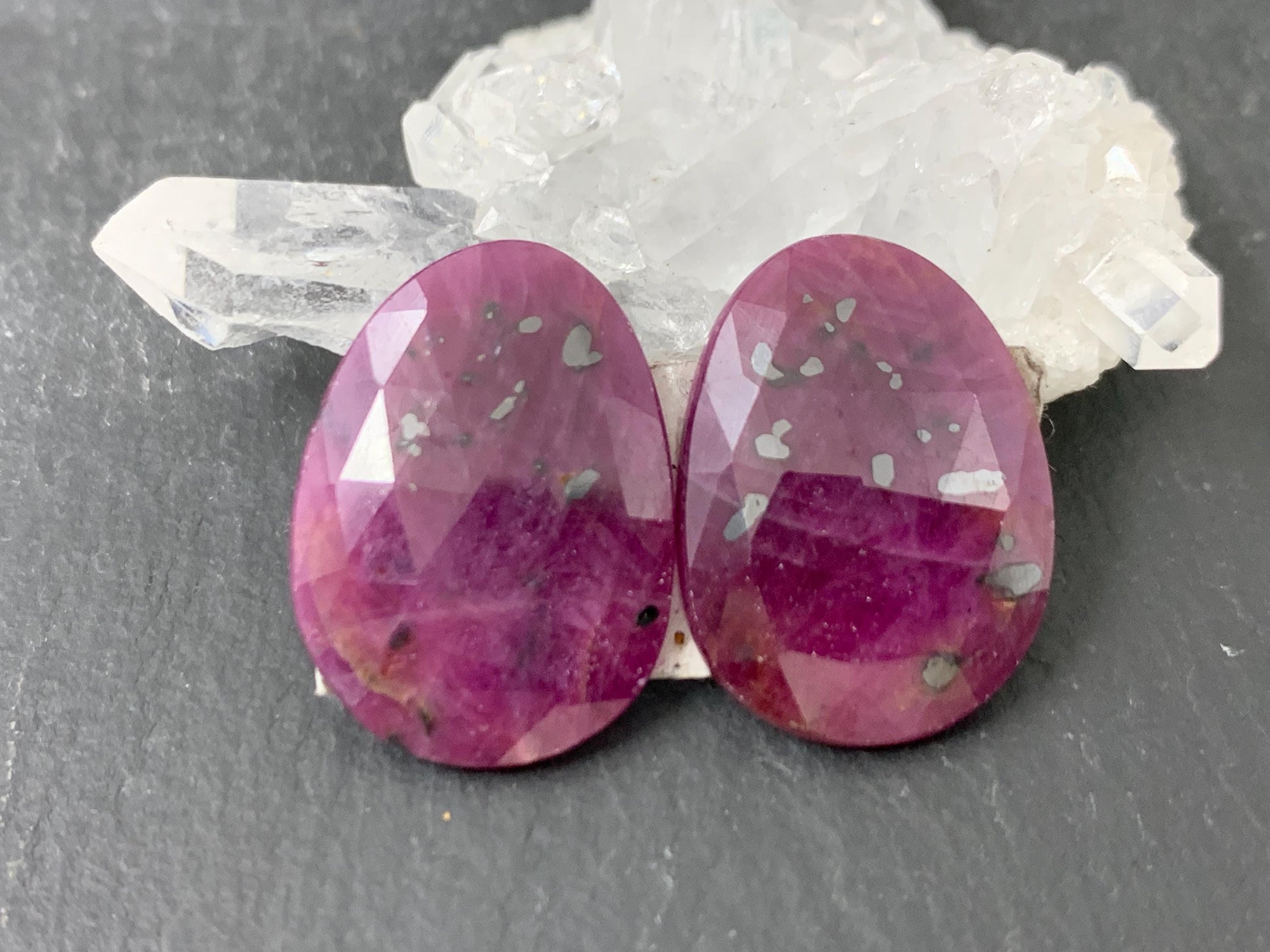 Faceted Ruby pair 13x19x3mm cabochon