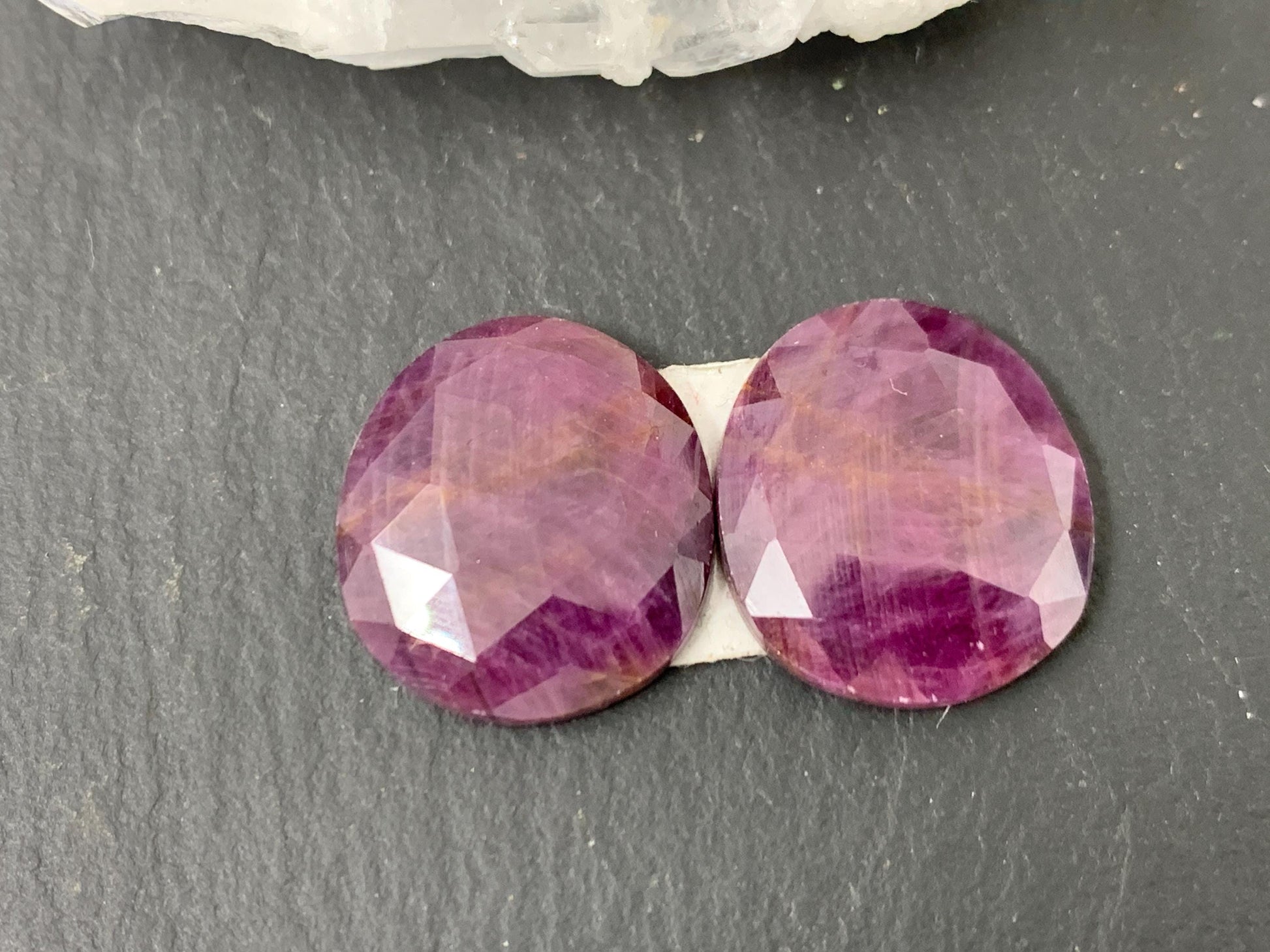 Faceted Ruby pair 14x16x3.5mm cabochon