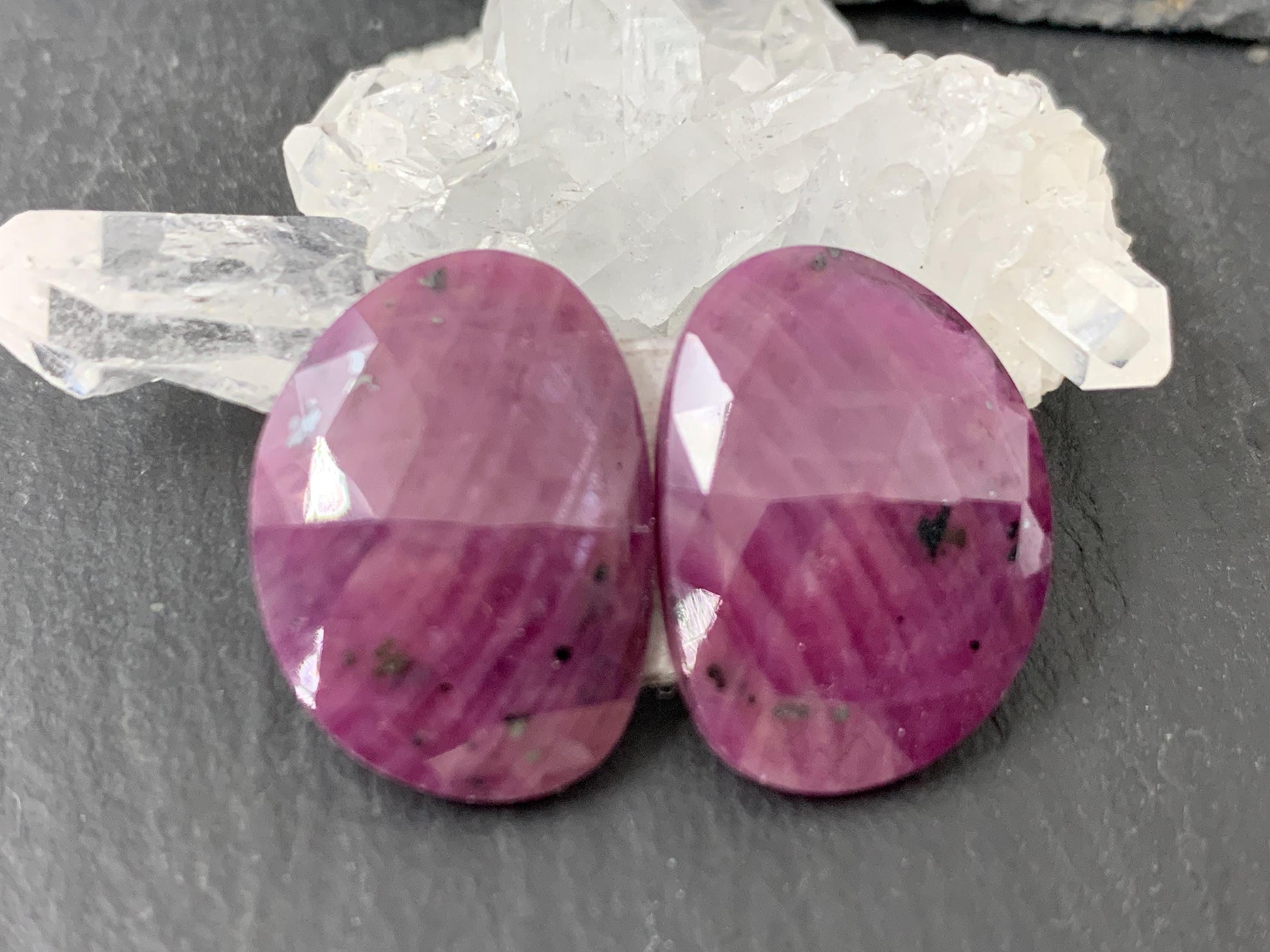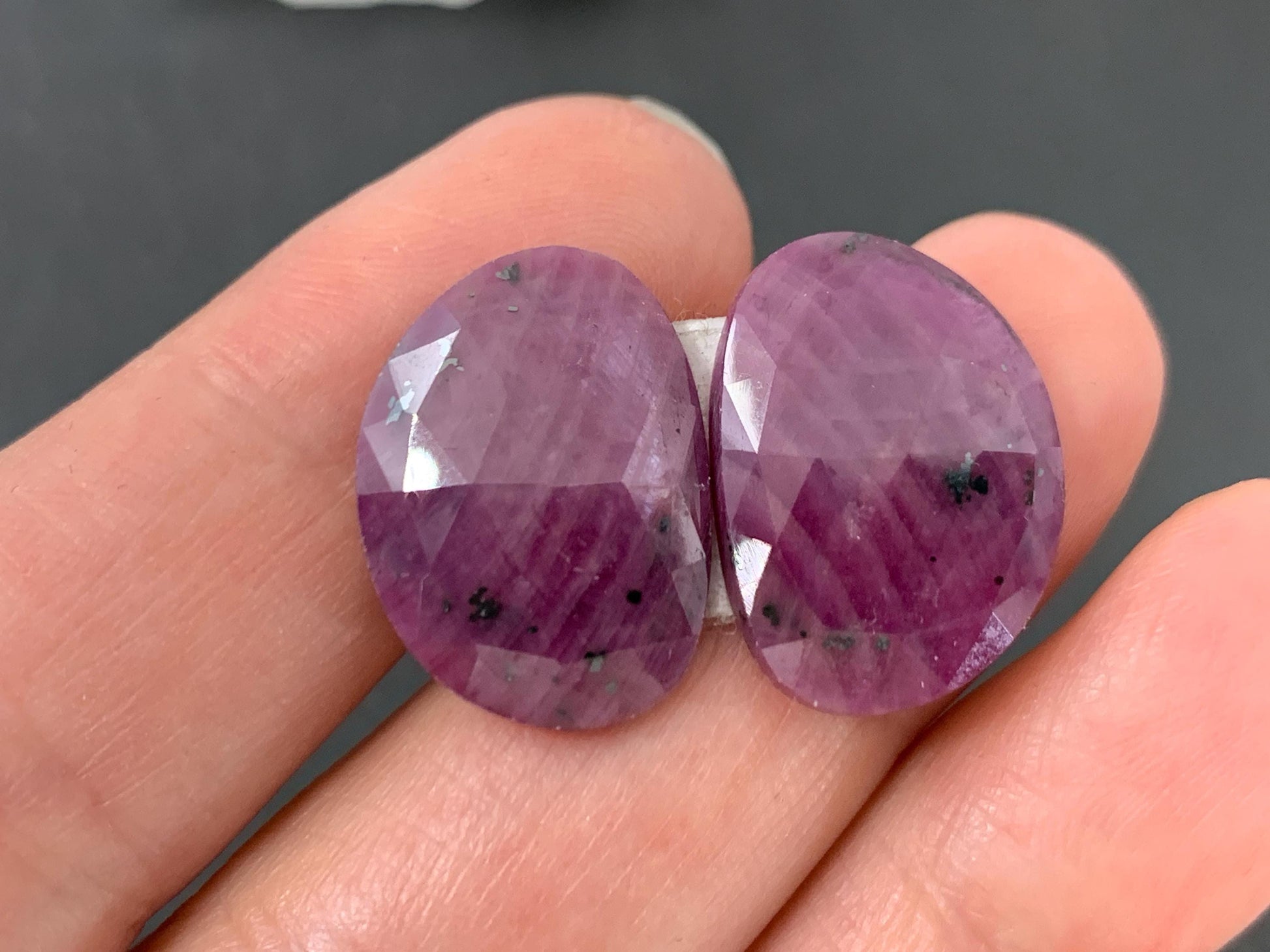 Faceted Ruby pair 14x19x3.5mm cabochon