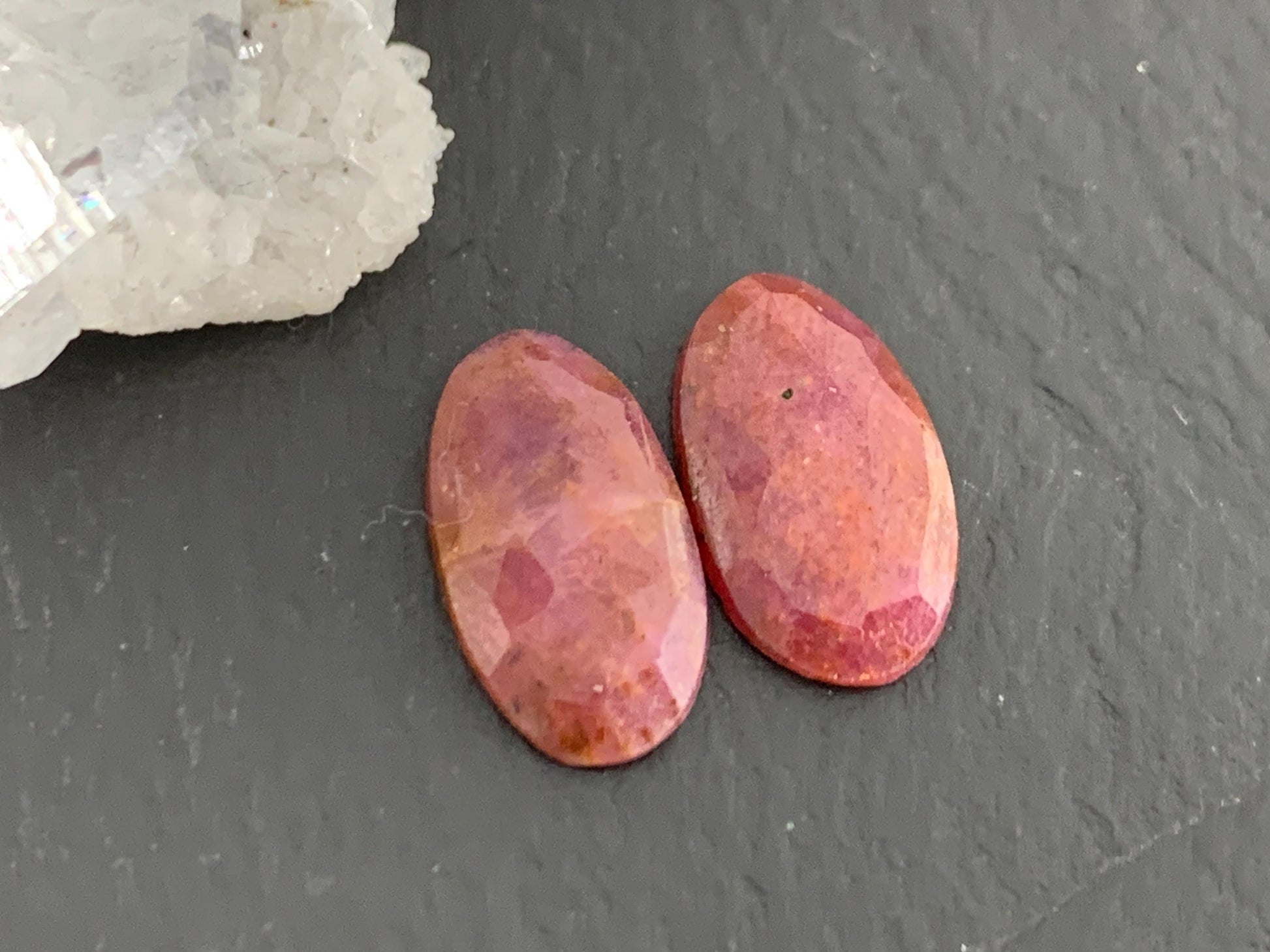 Faceted Ruby pair 7x12.5x2mm cabochon