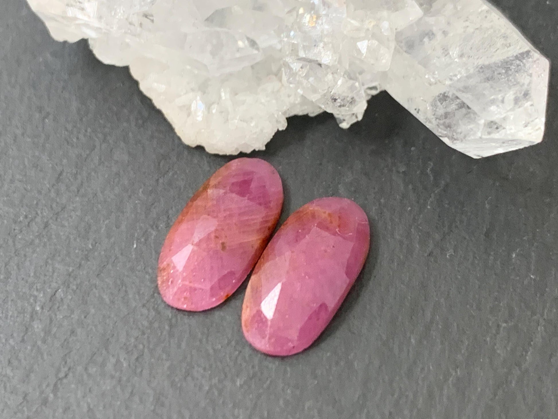 Faceted Ruby pair 7x14x2.5mm cabochon