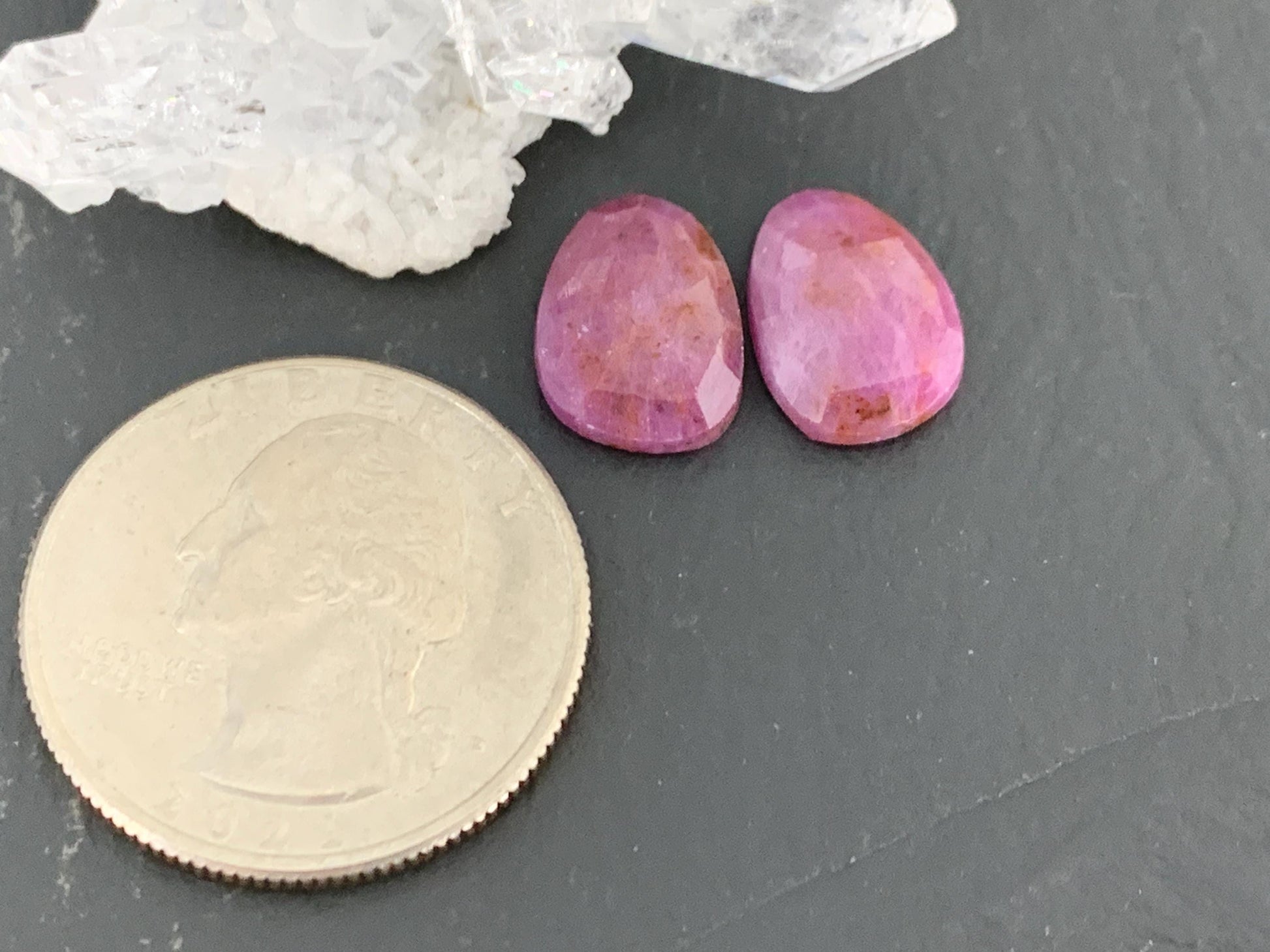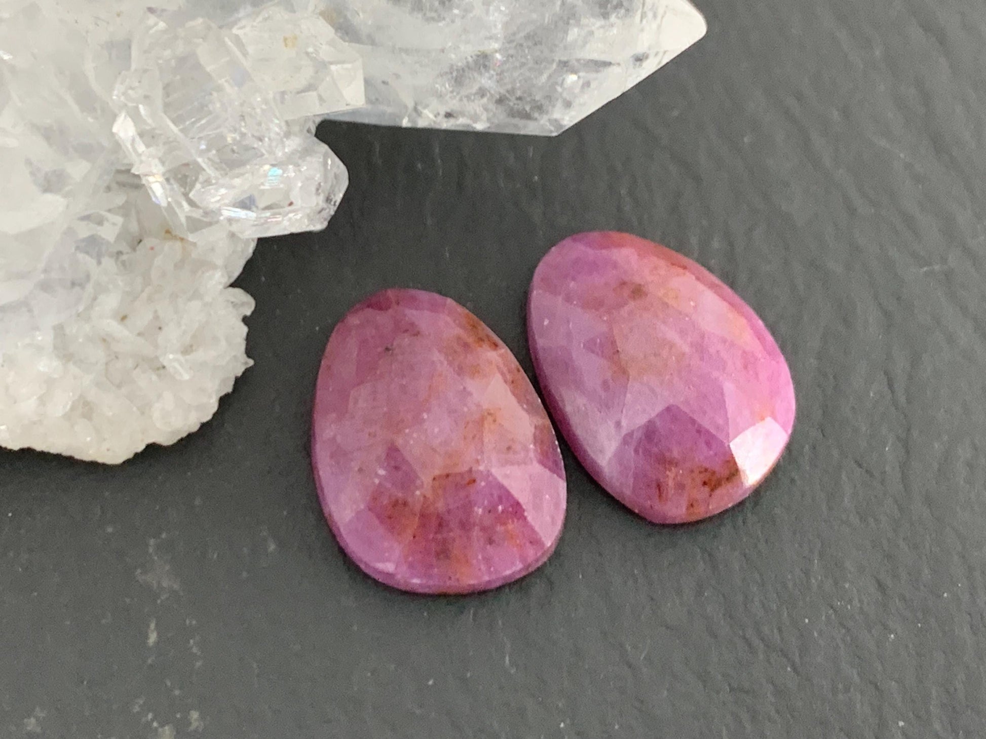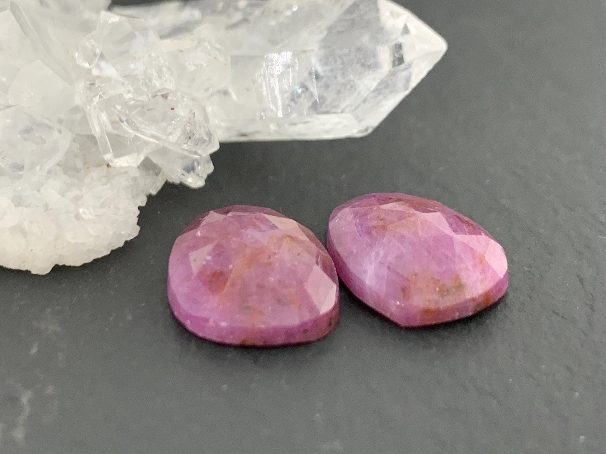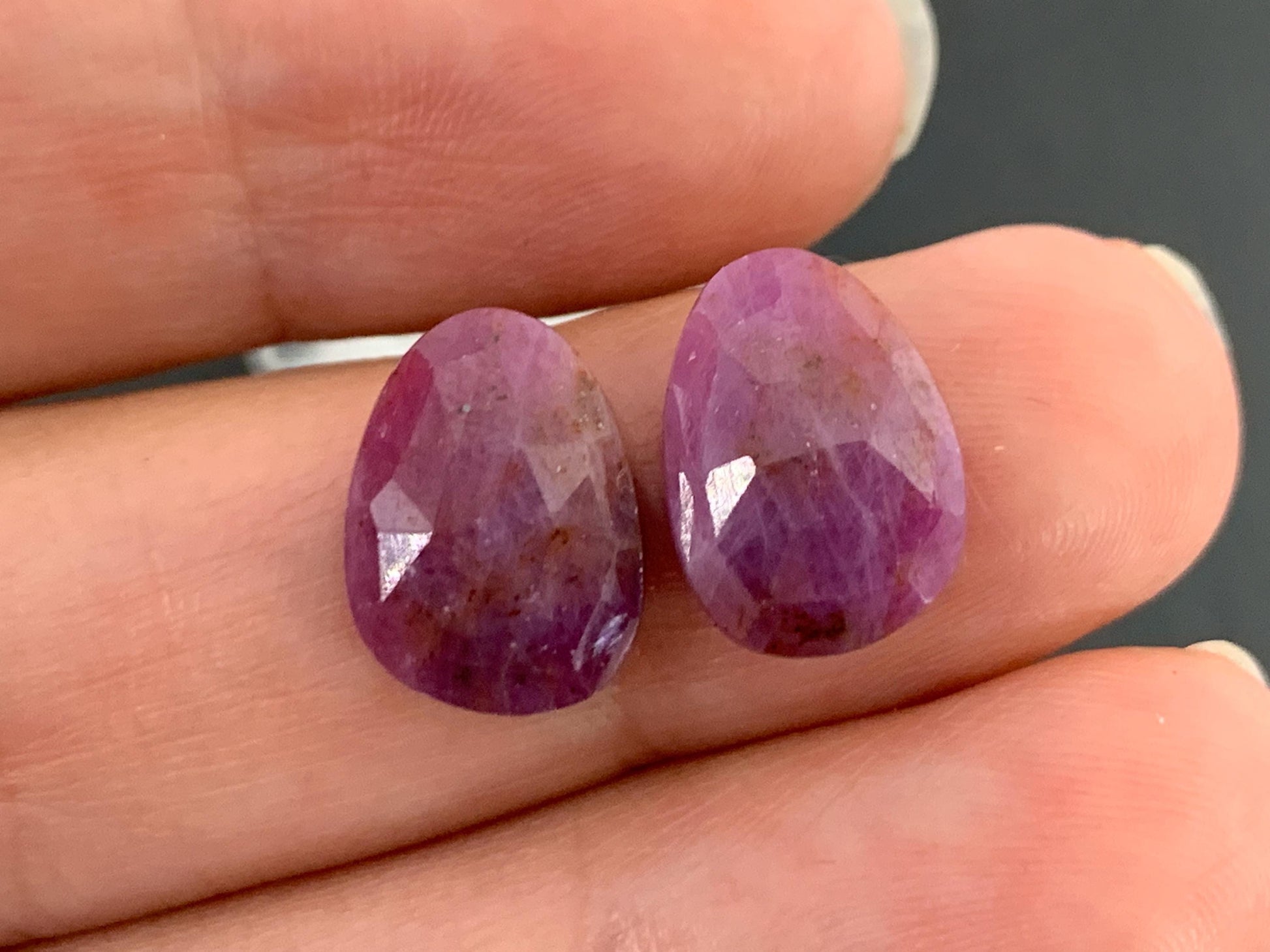 Faceted Ruby pair 9x13x3mm cabochon