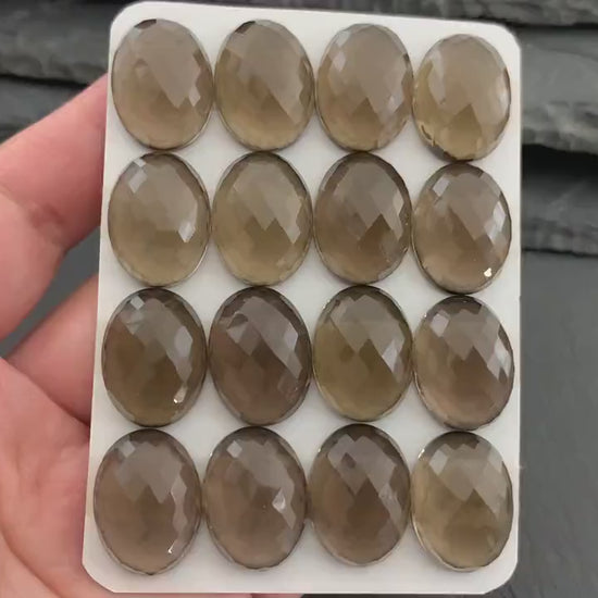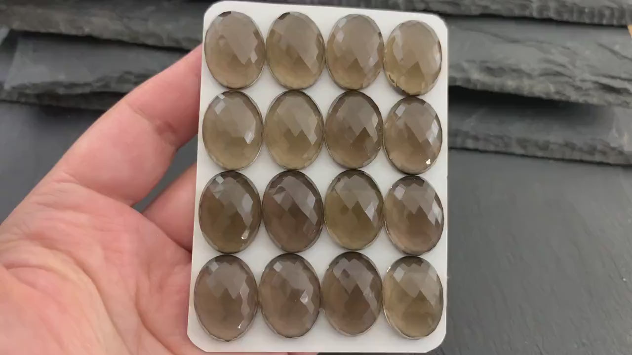 Faceted Smokey Quartz oval 15x20mm cabochon - Calibrated cabochons