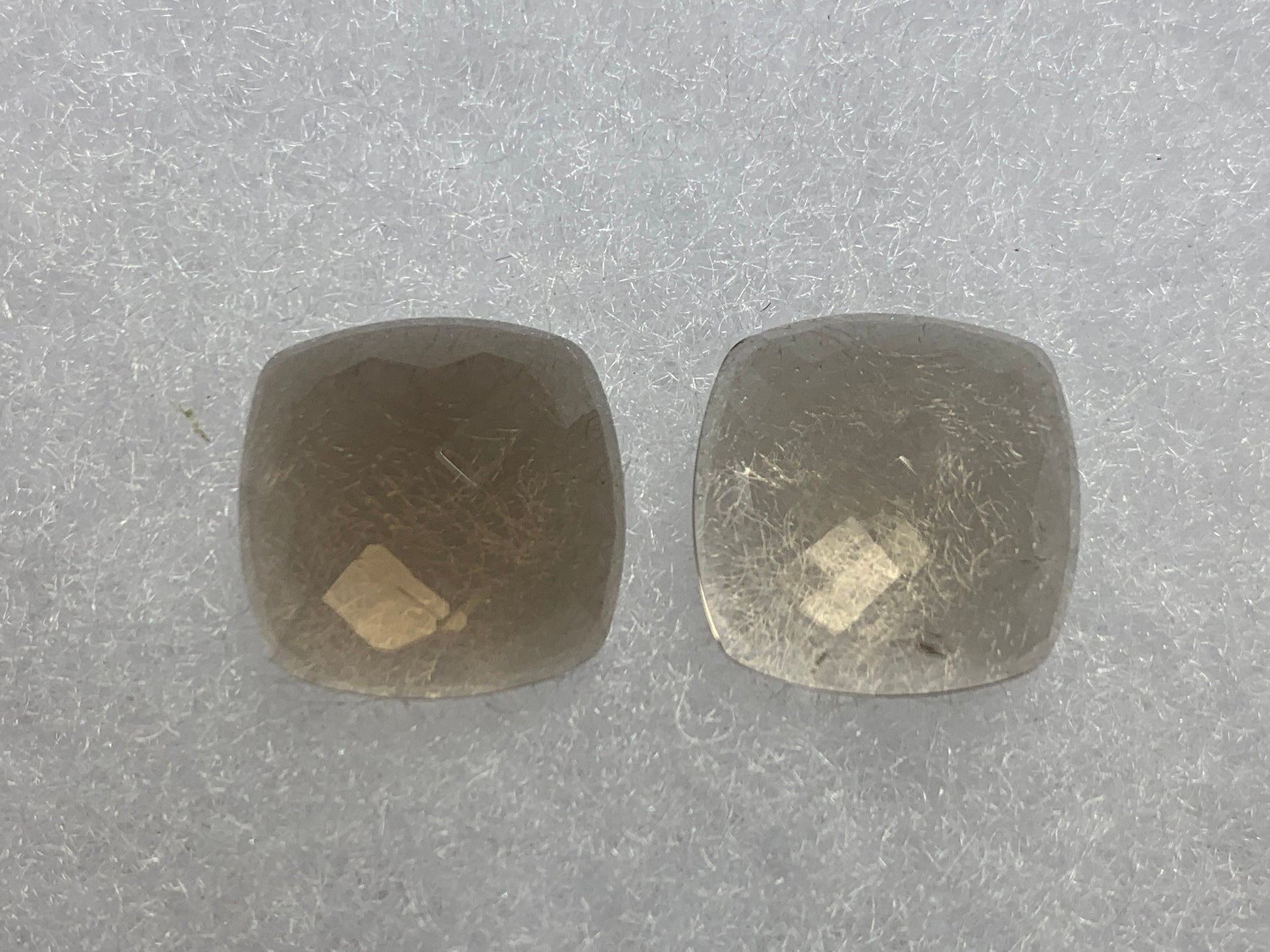 Faceted Smokey Quartz square cushion 14x14mm cabochon - Calibrated cabochons