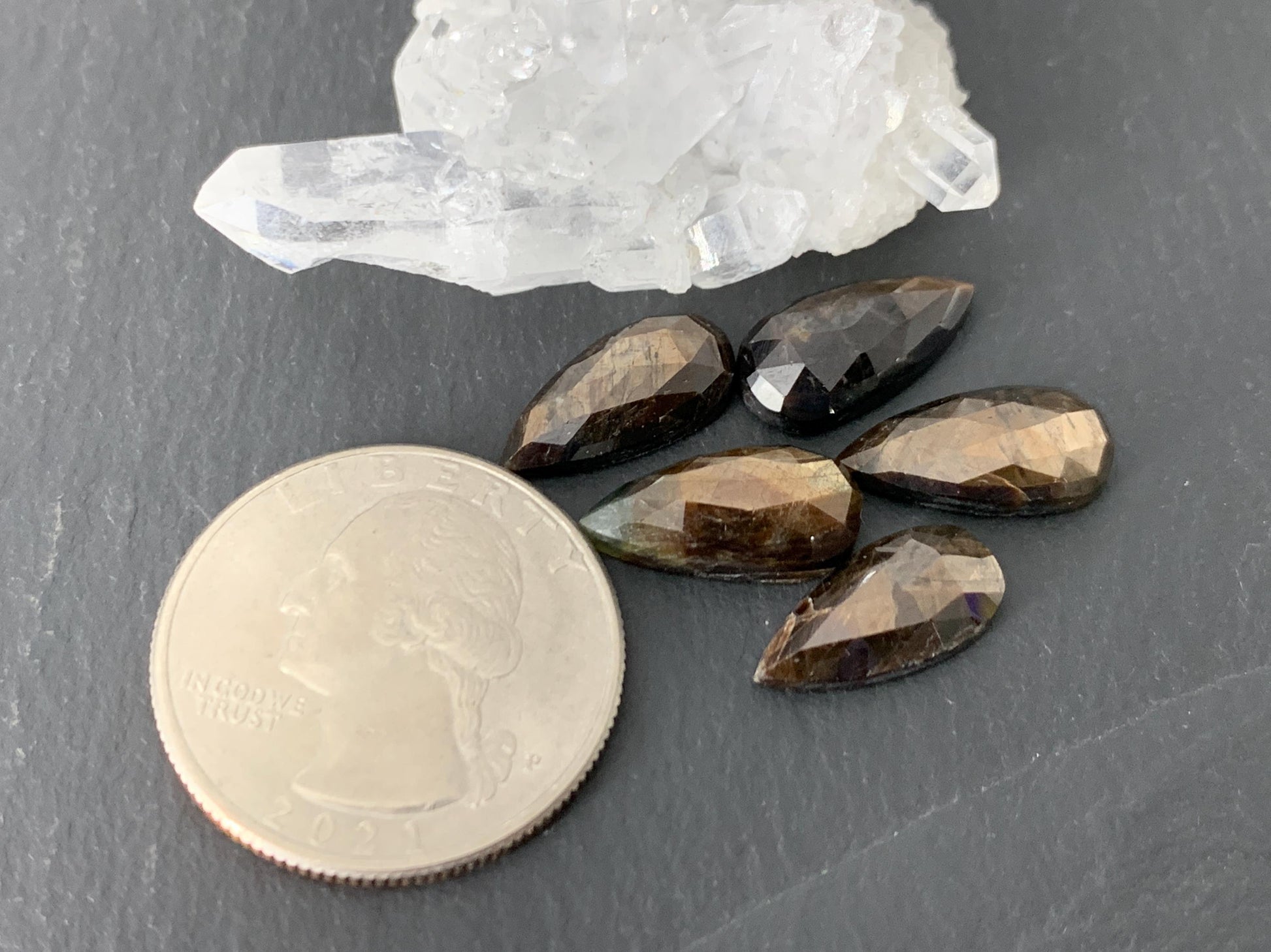 Shape: pear, faceted top
