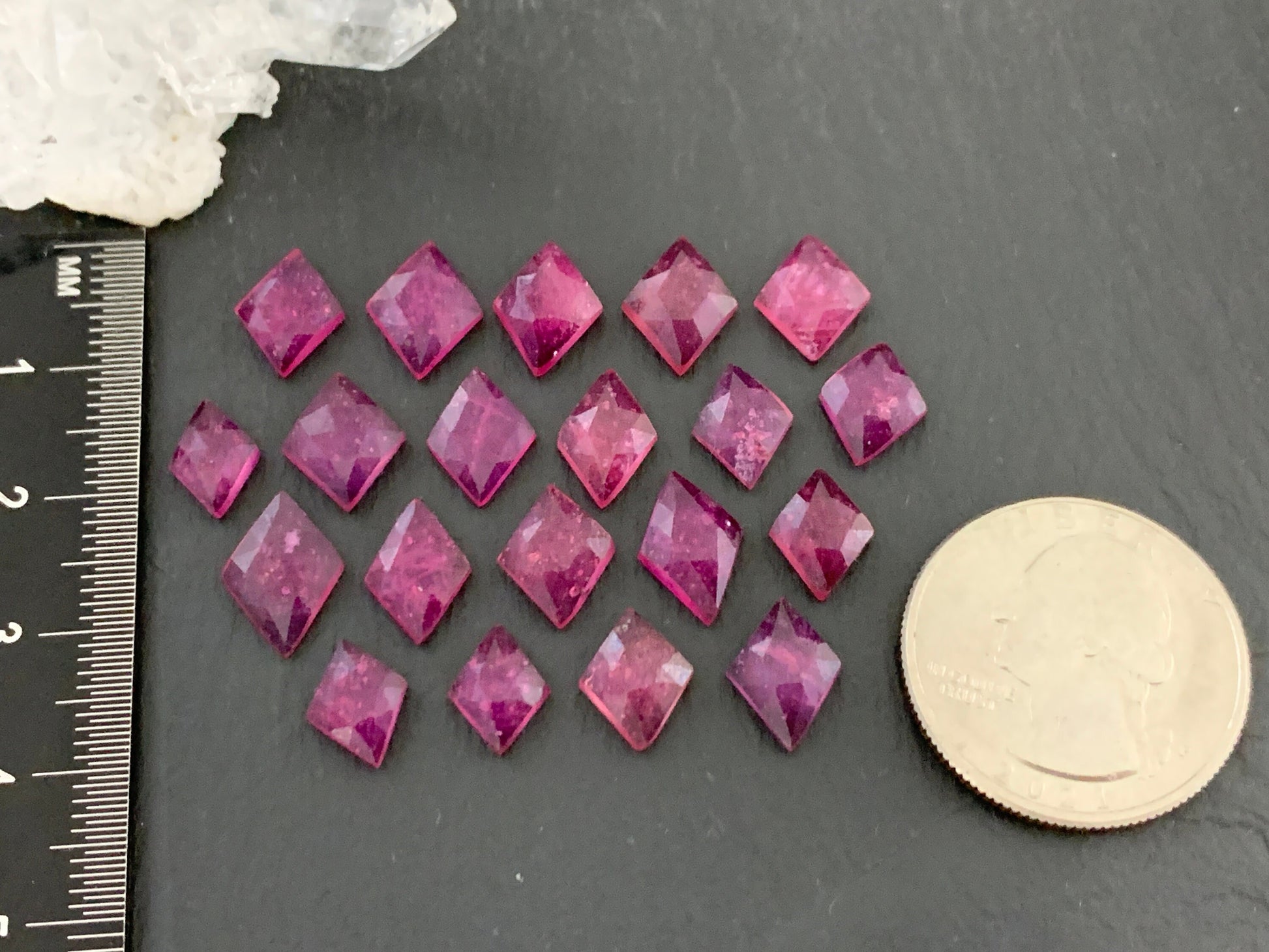 Shape: rhombus, faceted top