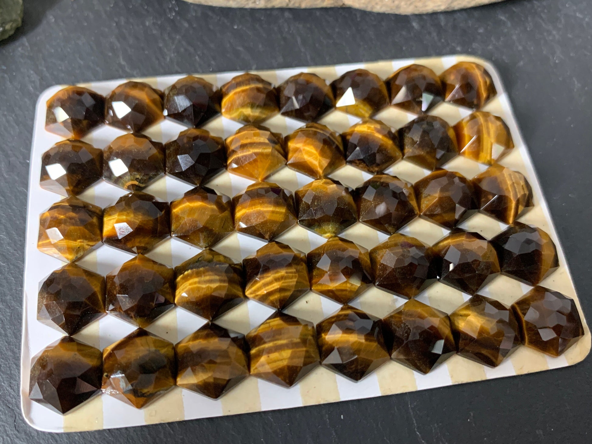 Faceted Tiger Eye hexagon 11mm cabochon - Calibrated cabochons