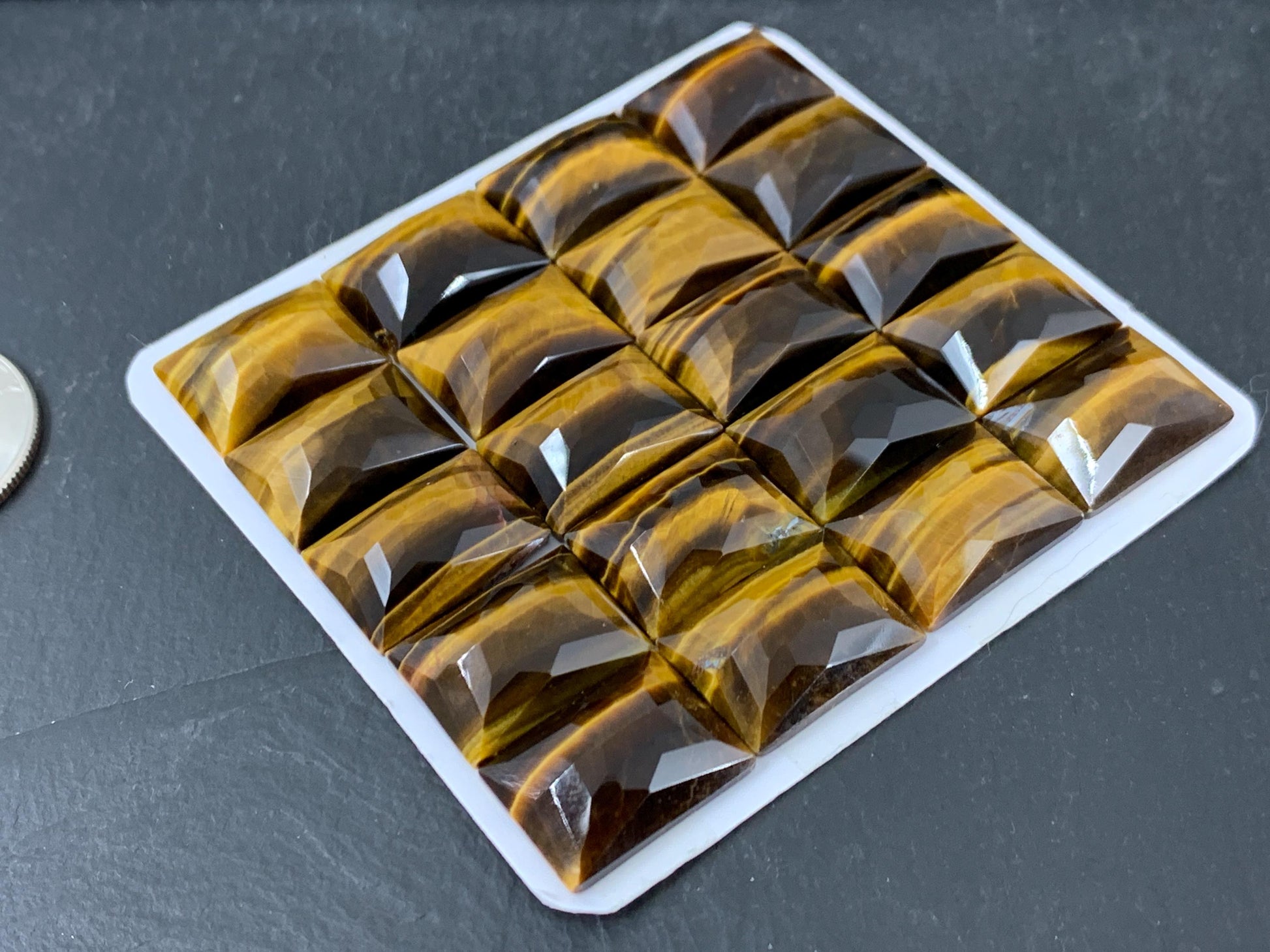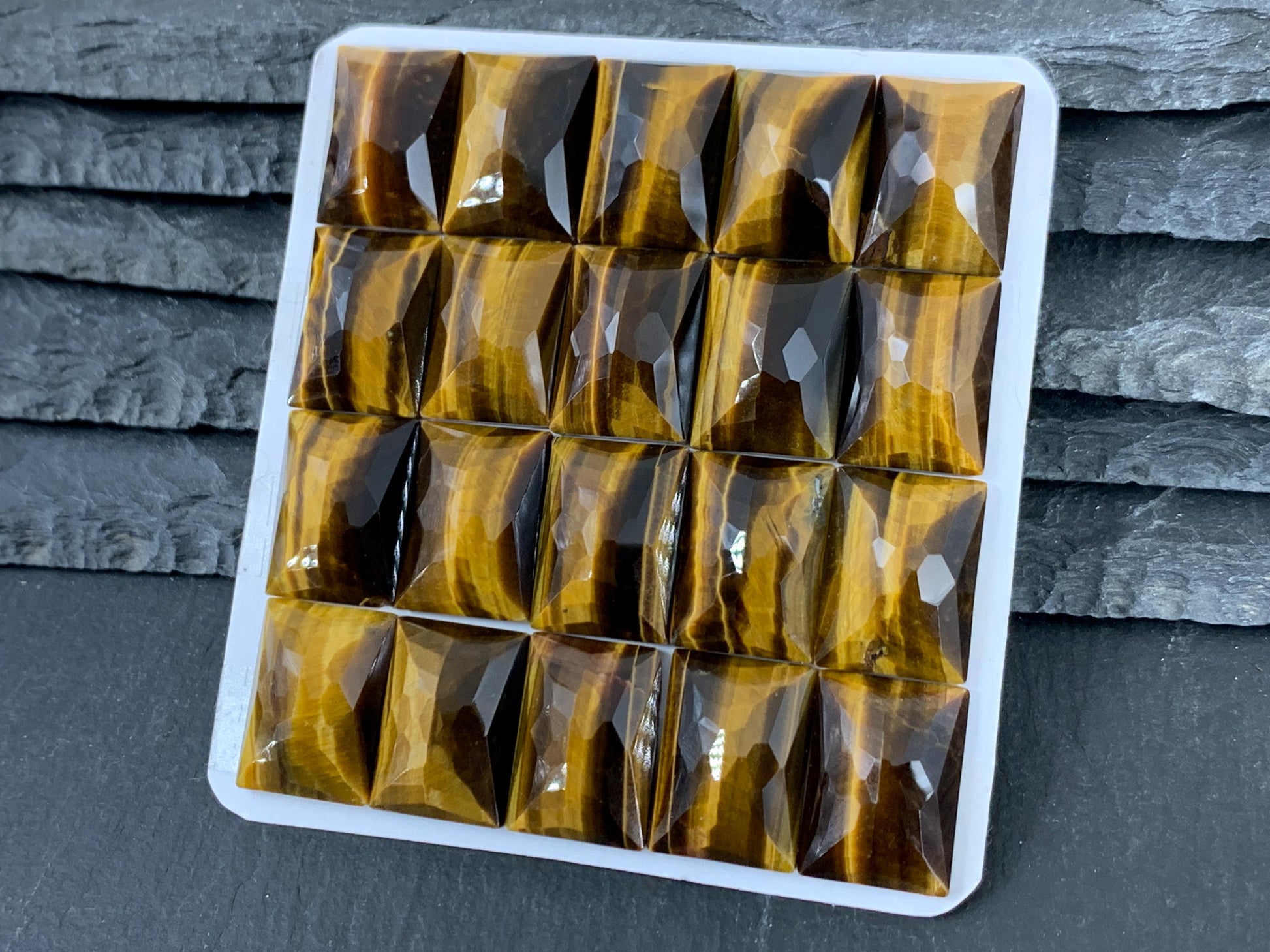 Faceted Tiger Eye Rectangle Cabochon 13x18mm - Calibrated Gemstone