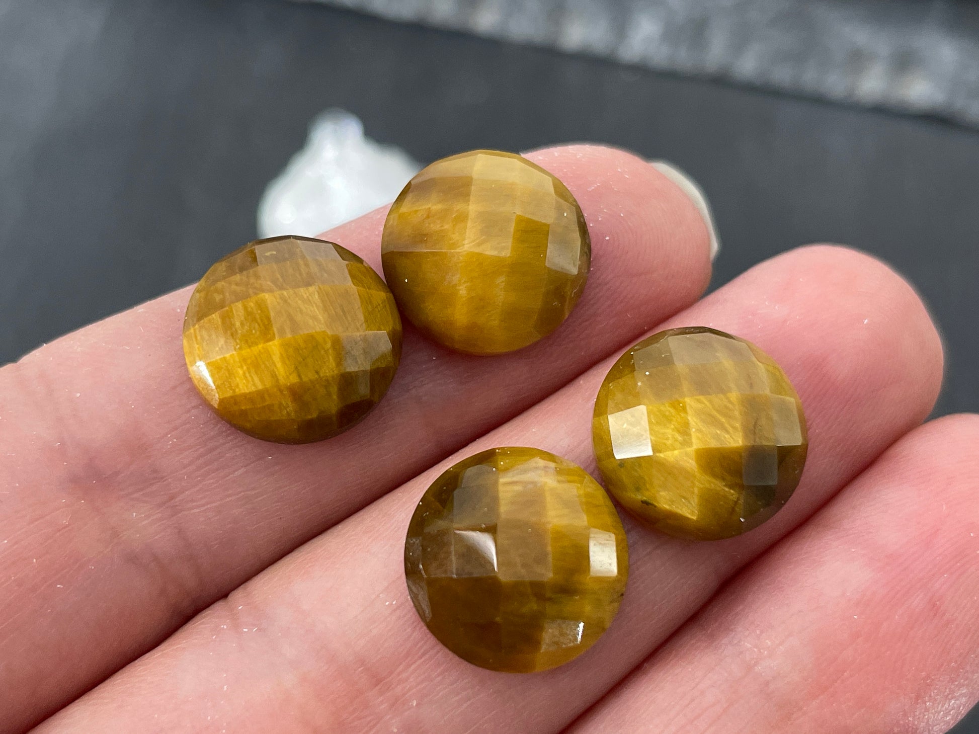 Faceted Tiger Eye round 12mm cabochon - Calibrated cabochons