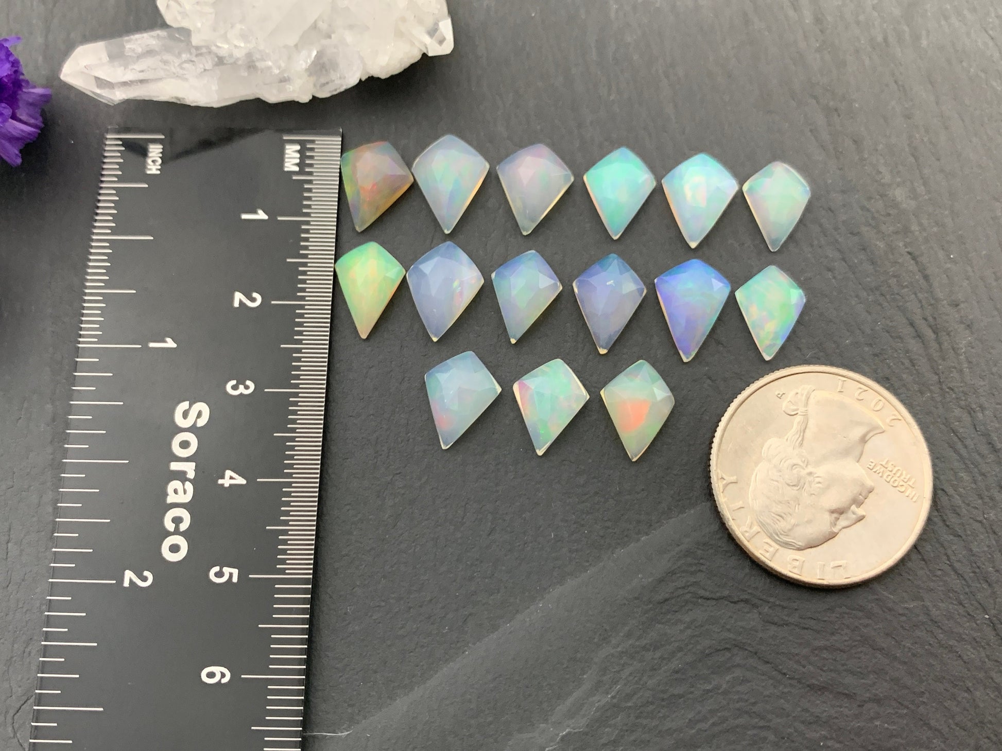 Faceted Welo Opal kite 11-11.8mm cabochon