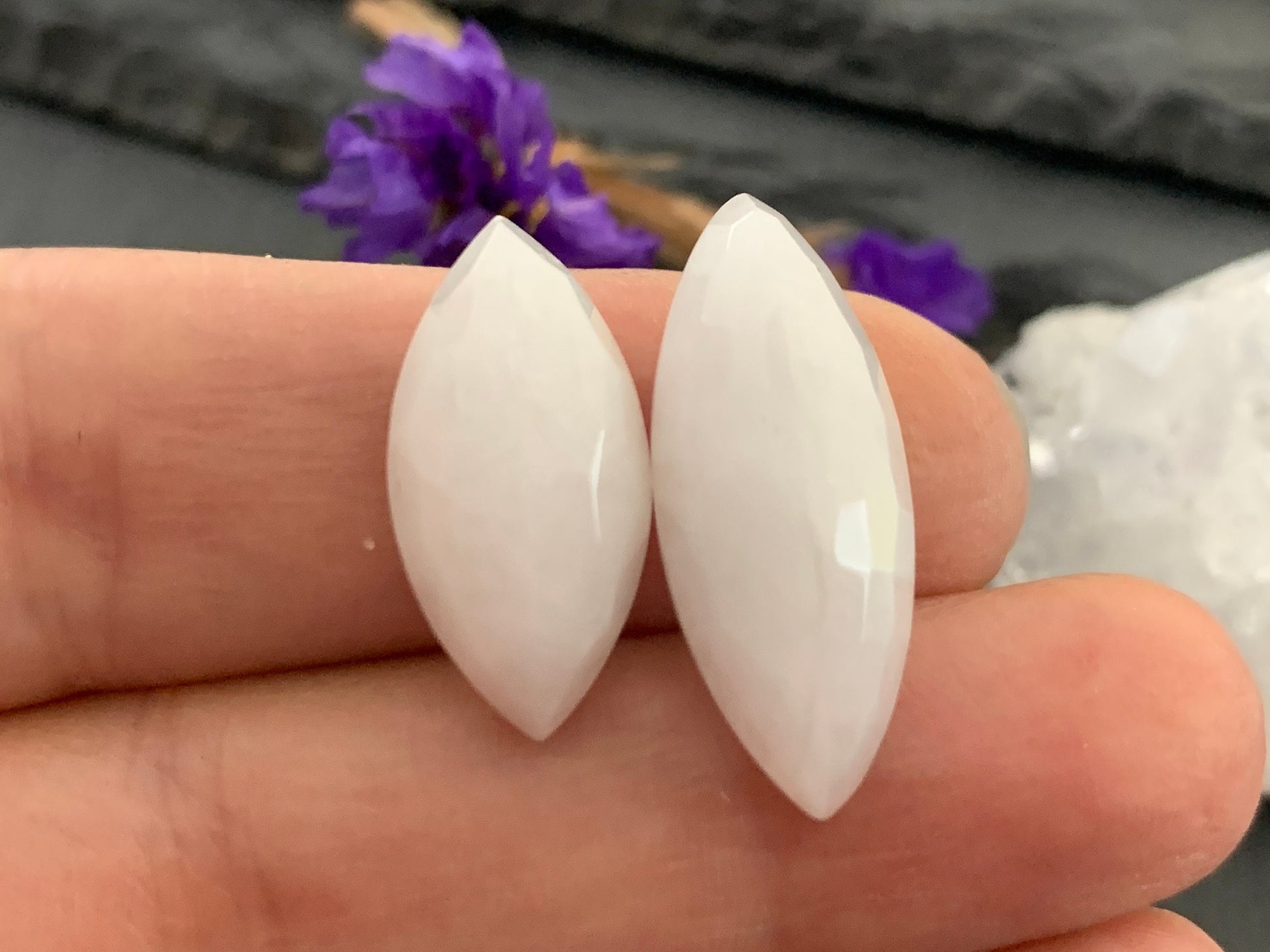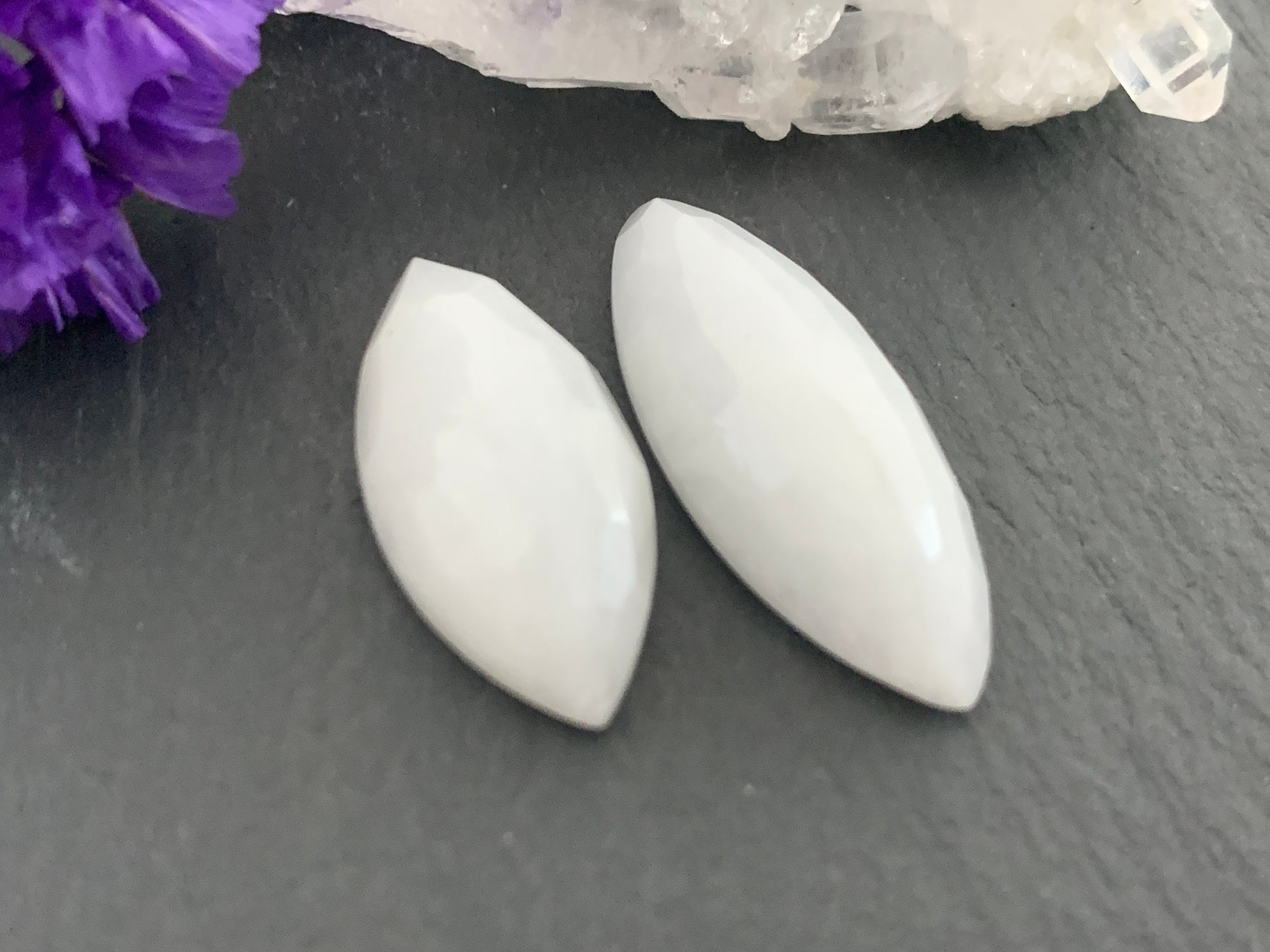 Faceted White Quartzite marquise 10x20mm, 10x25mm cabochon | Calibrated Cabochons