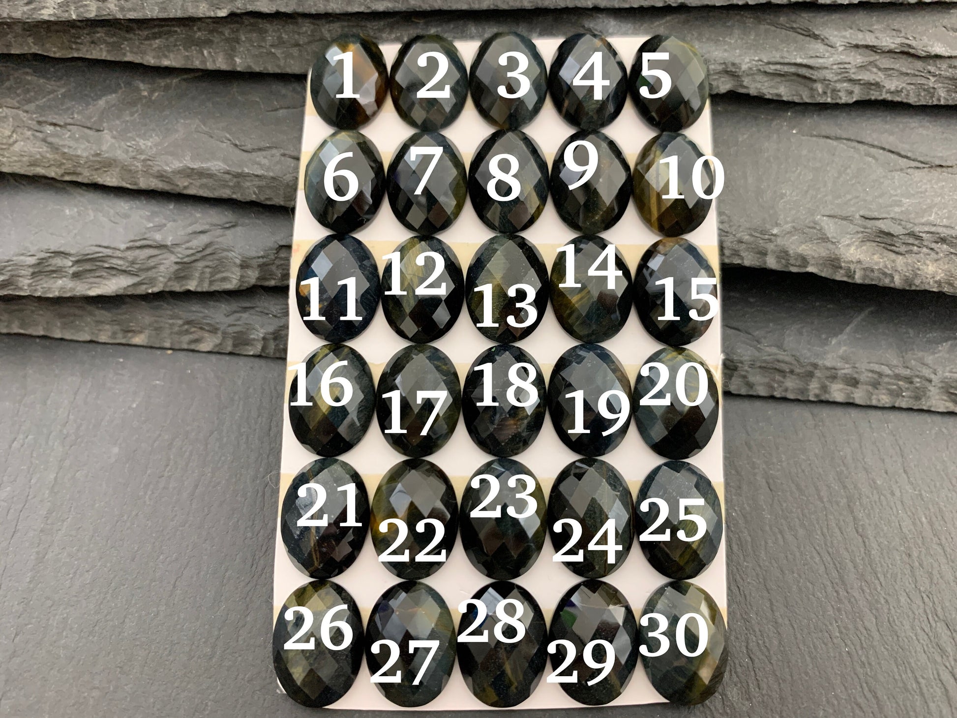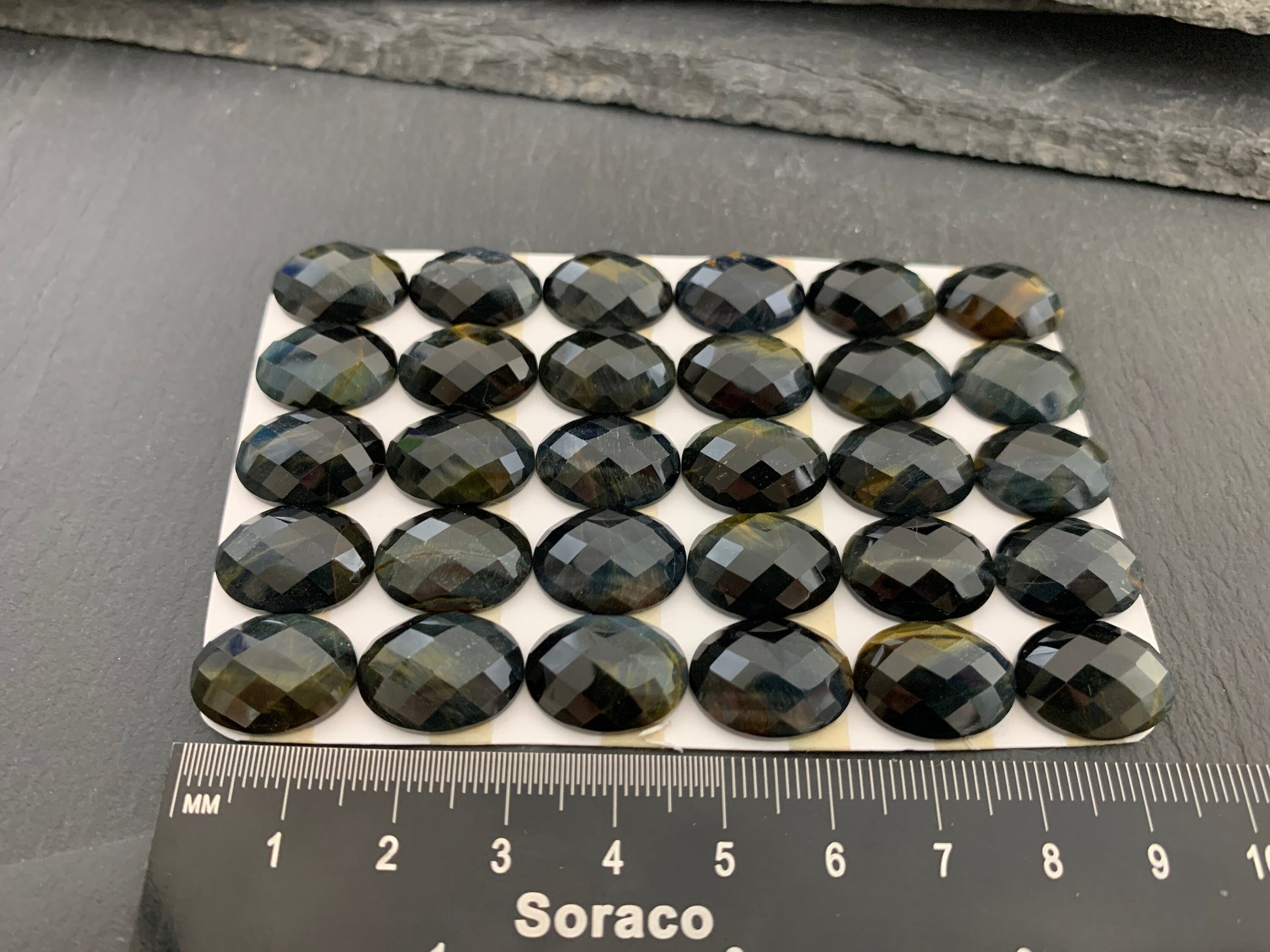 Faceted Yellow Blue Tiger Eye oval 12x16mm cabochon - Calibrated cabochons