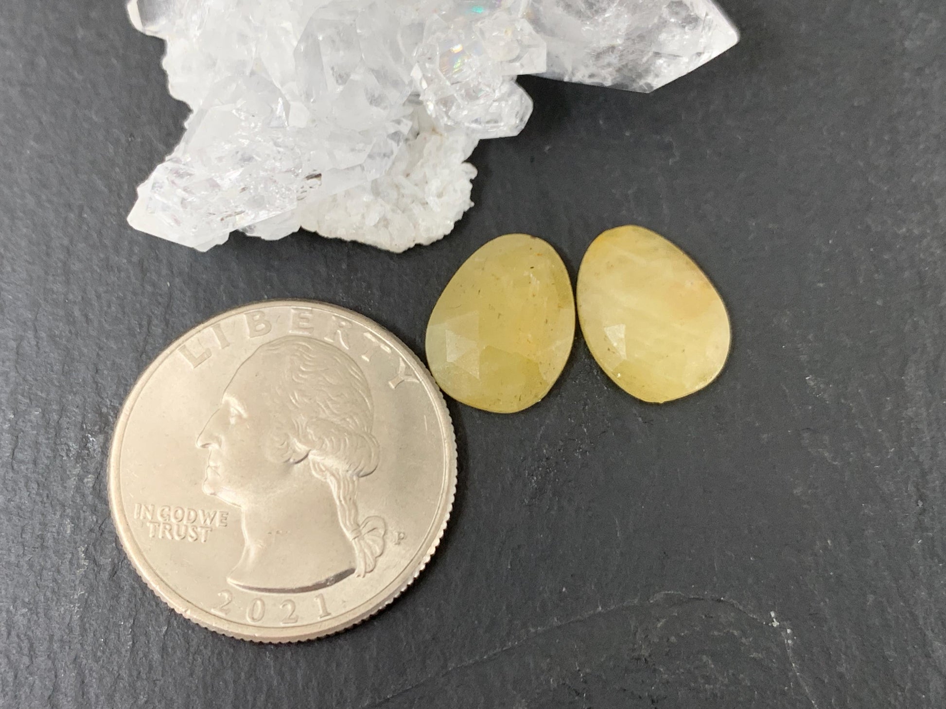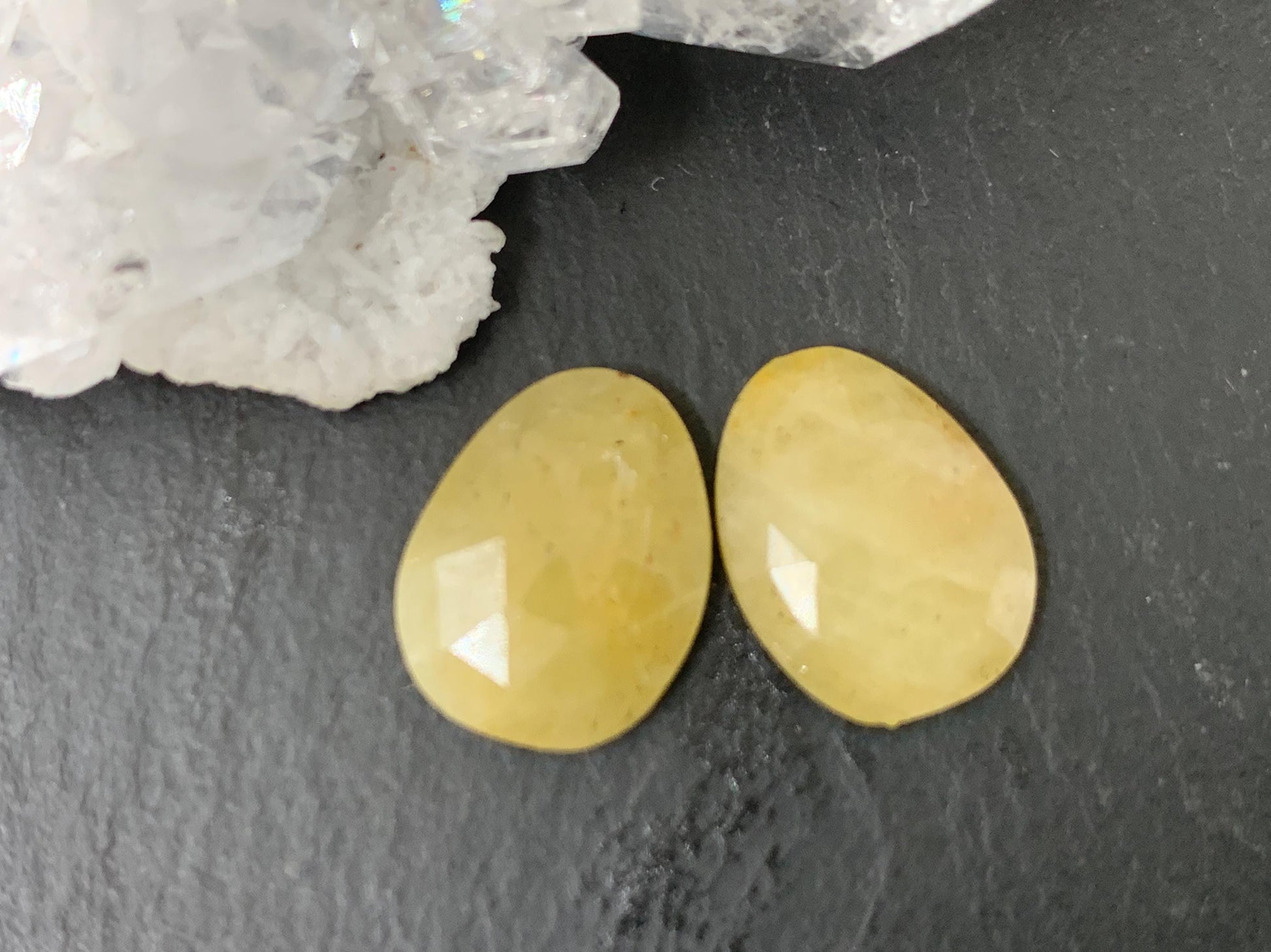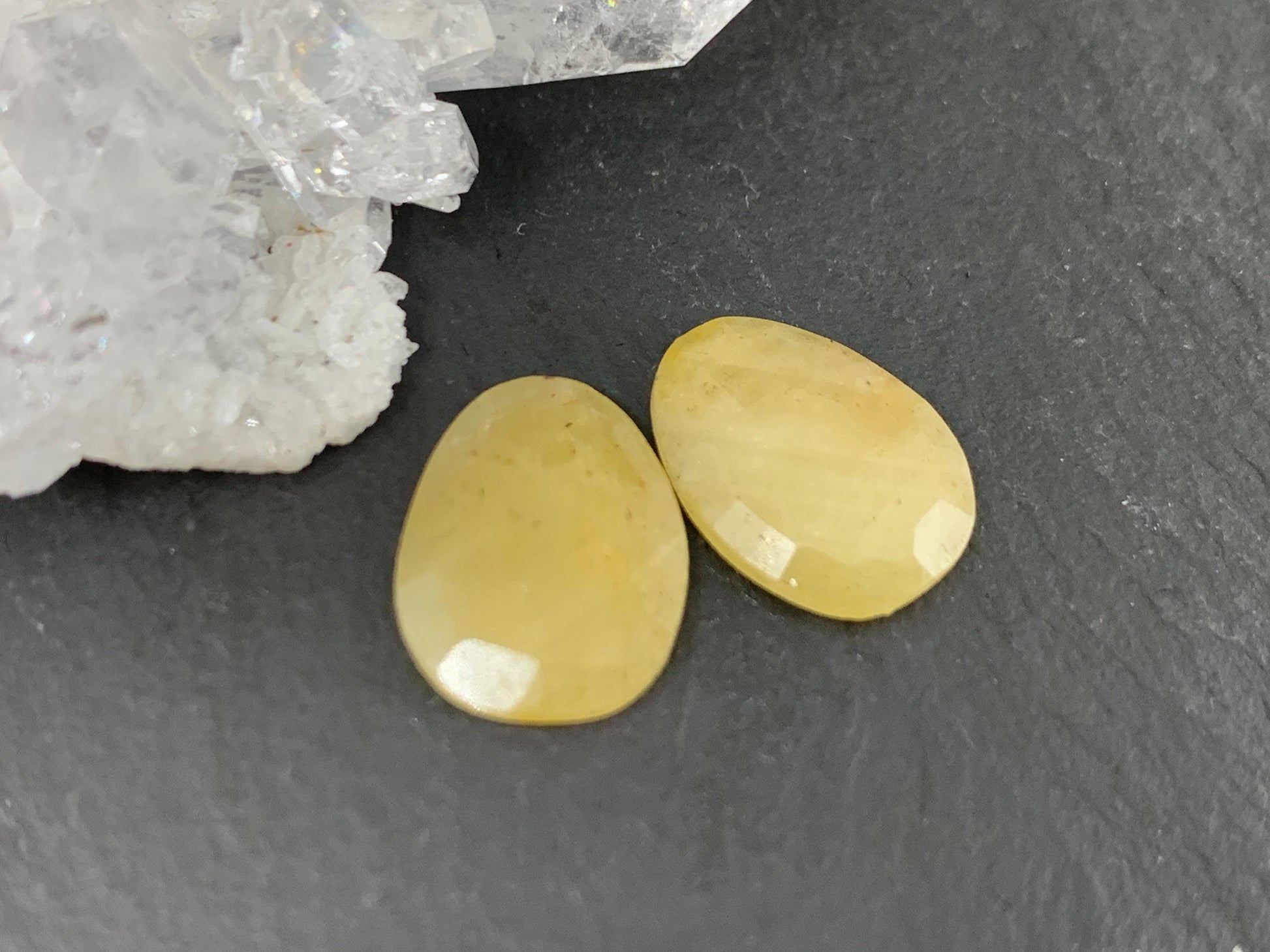 Faceted Yellow Sapphire pair 10x13x25mm cabochon