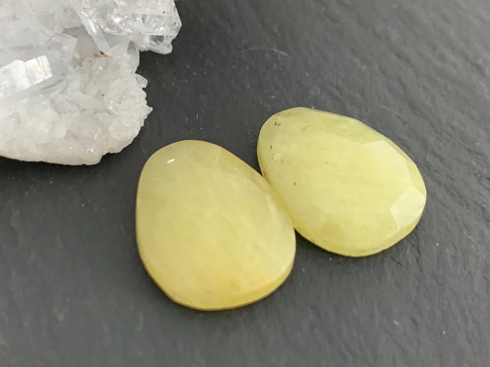 Faceted Yellow Sapphire pair 11x14x3.5mm cabochon