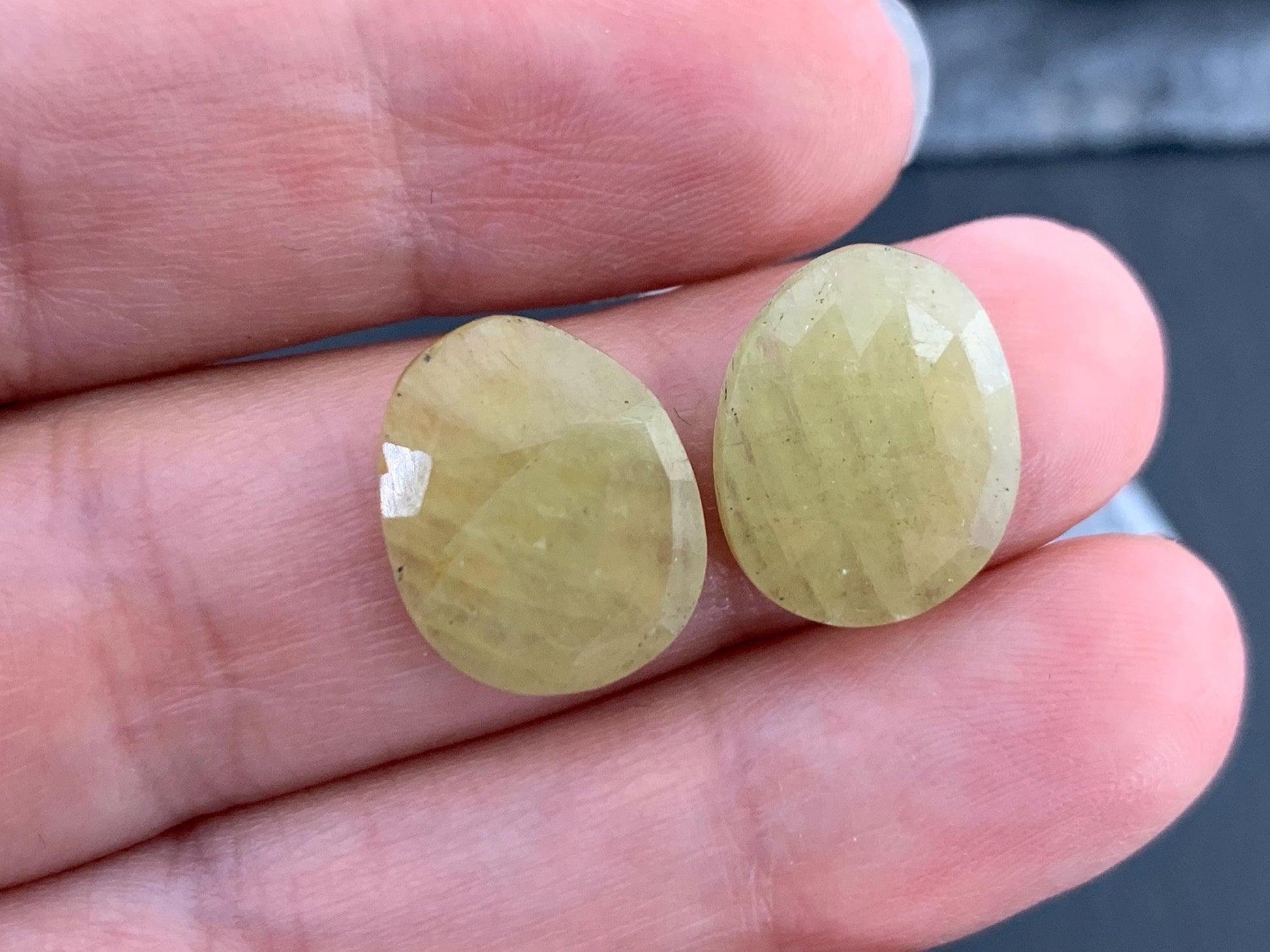 Faceted Yellow Sapphire pair 12x15x3mm cabochon