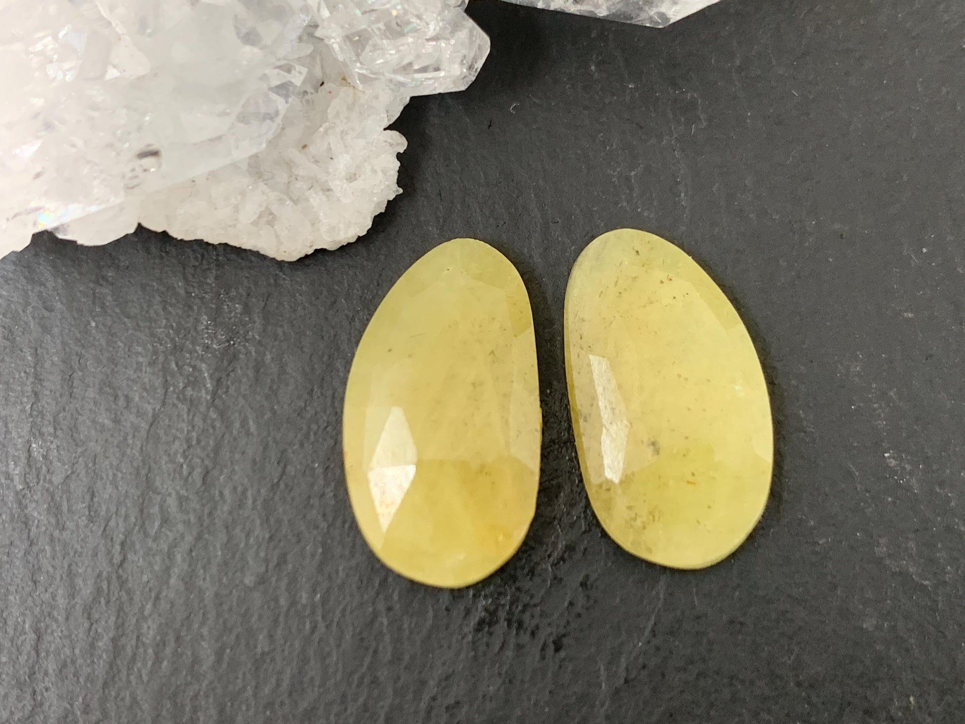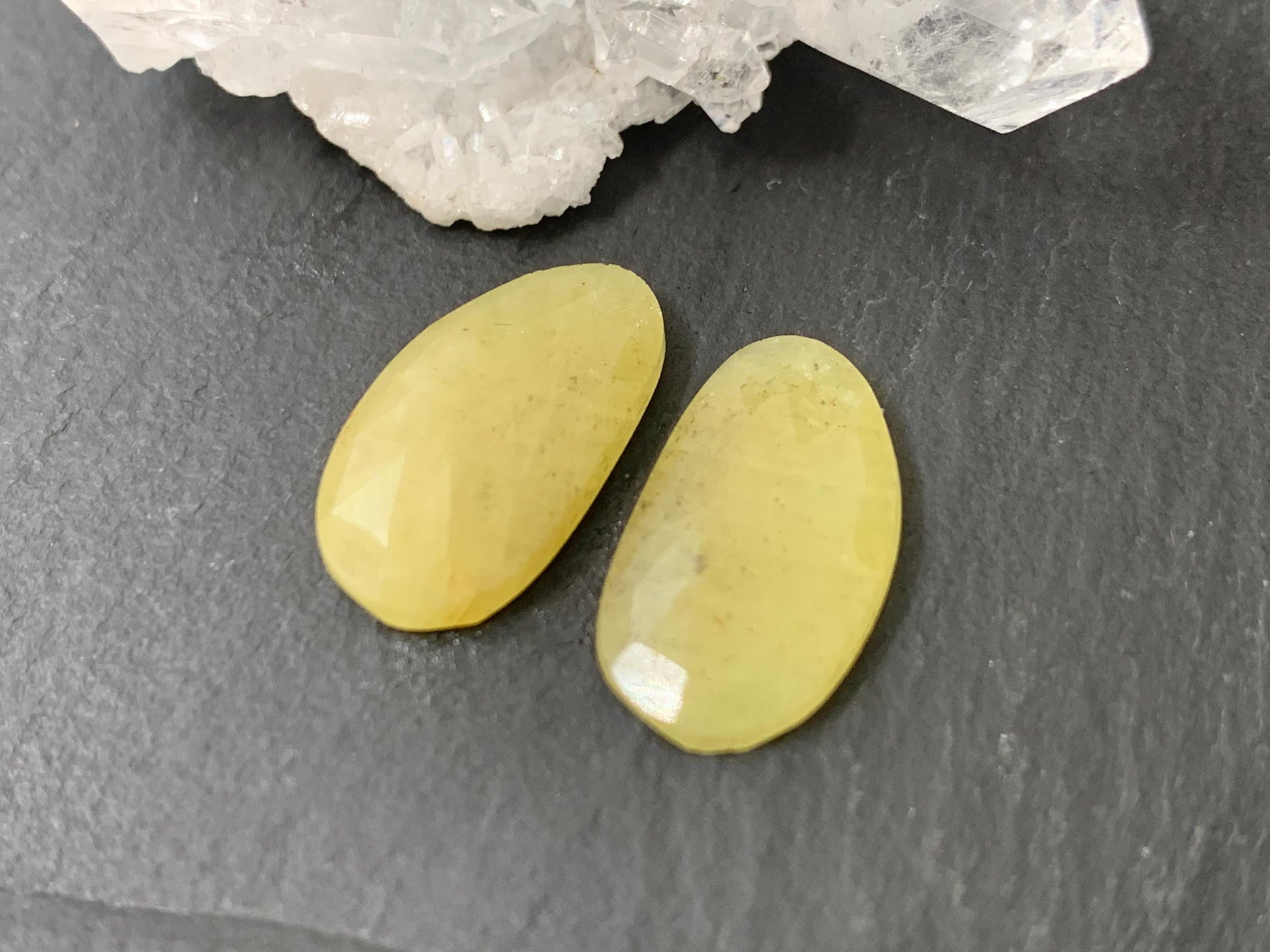 Faceted Yellow Sapphire pair 9x17x3mm cabochon