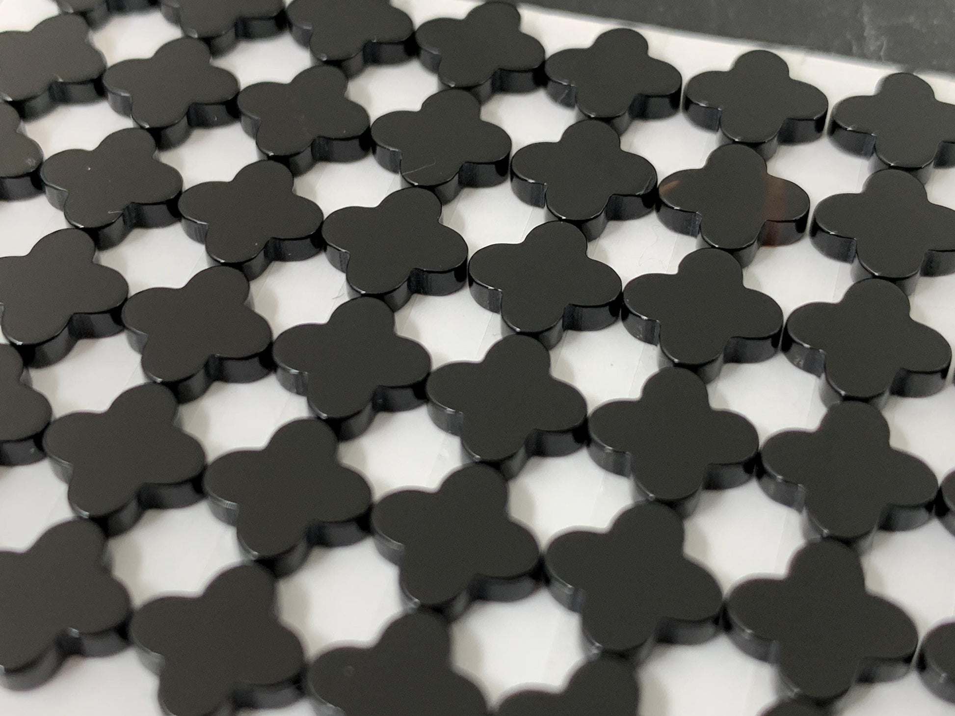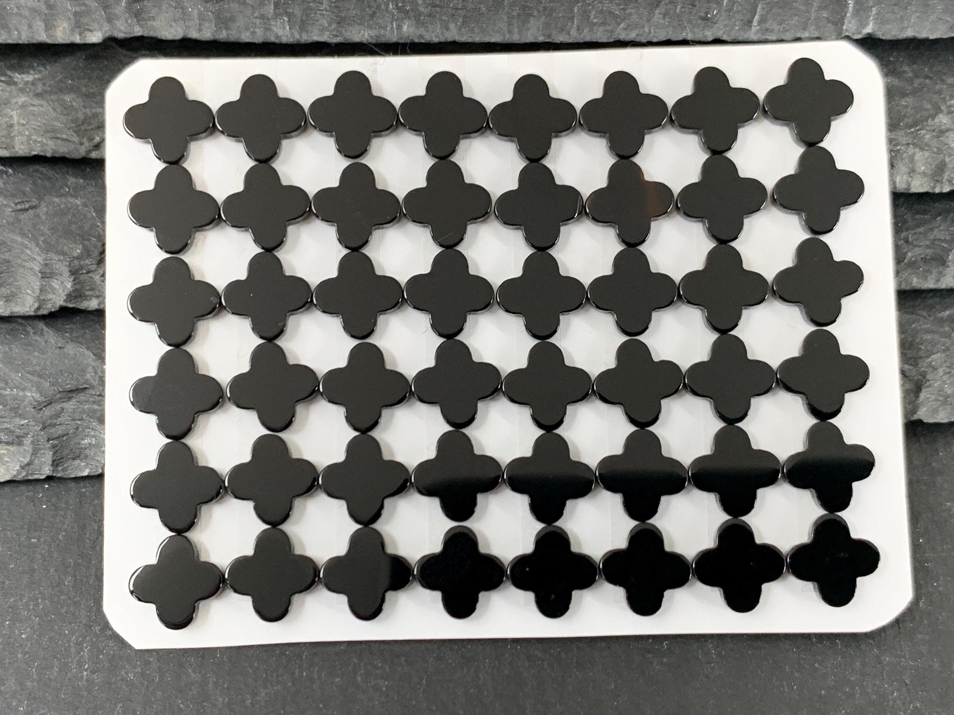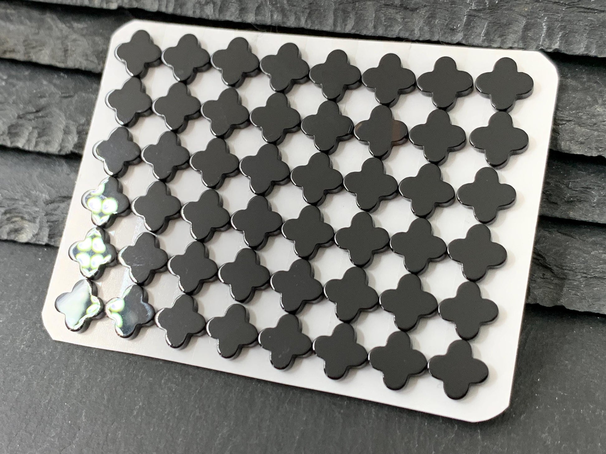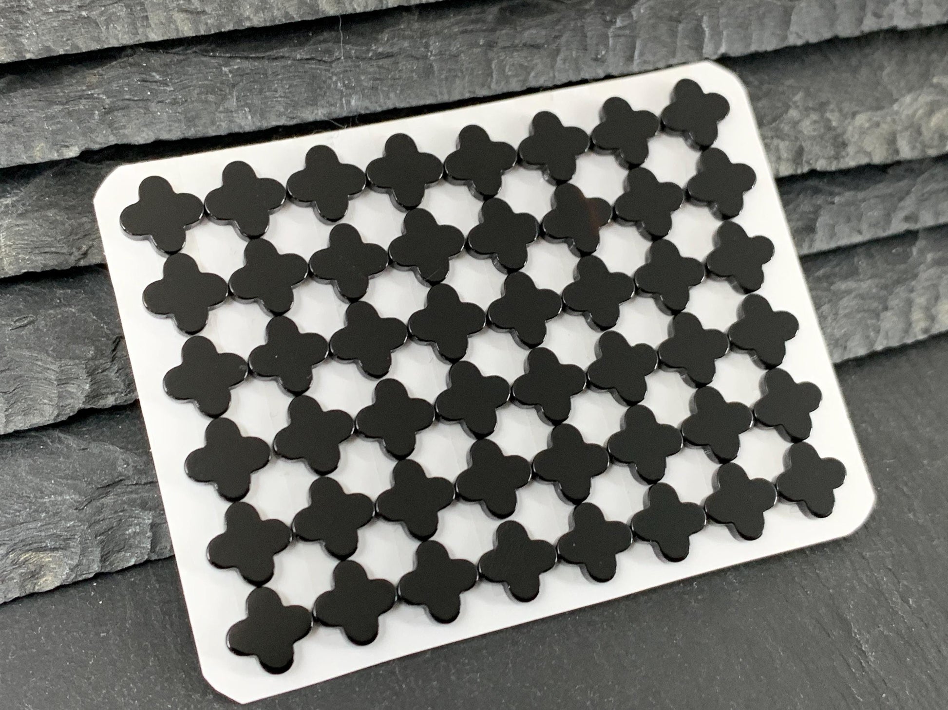 Flat Black Agate clover 8mm cabochon - Calibrated cabochons