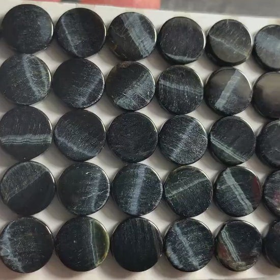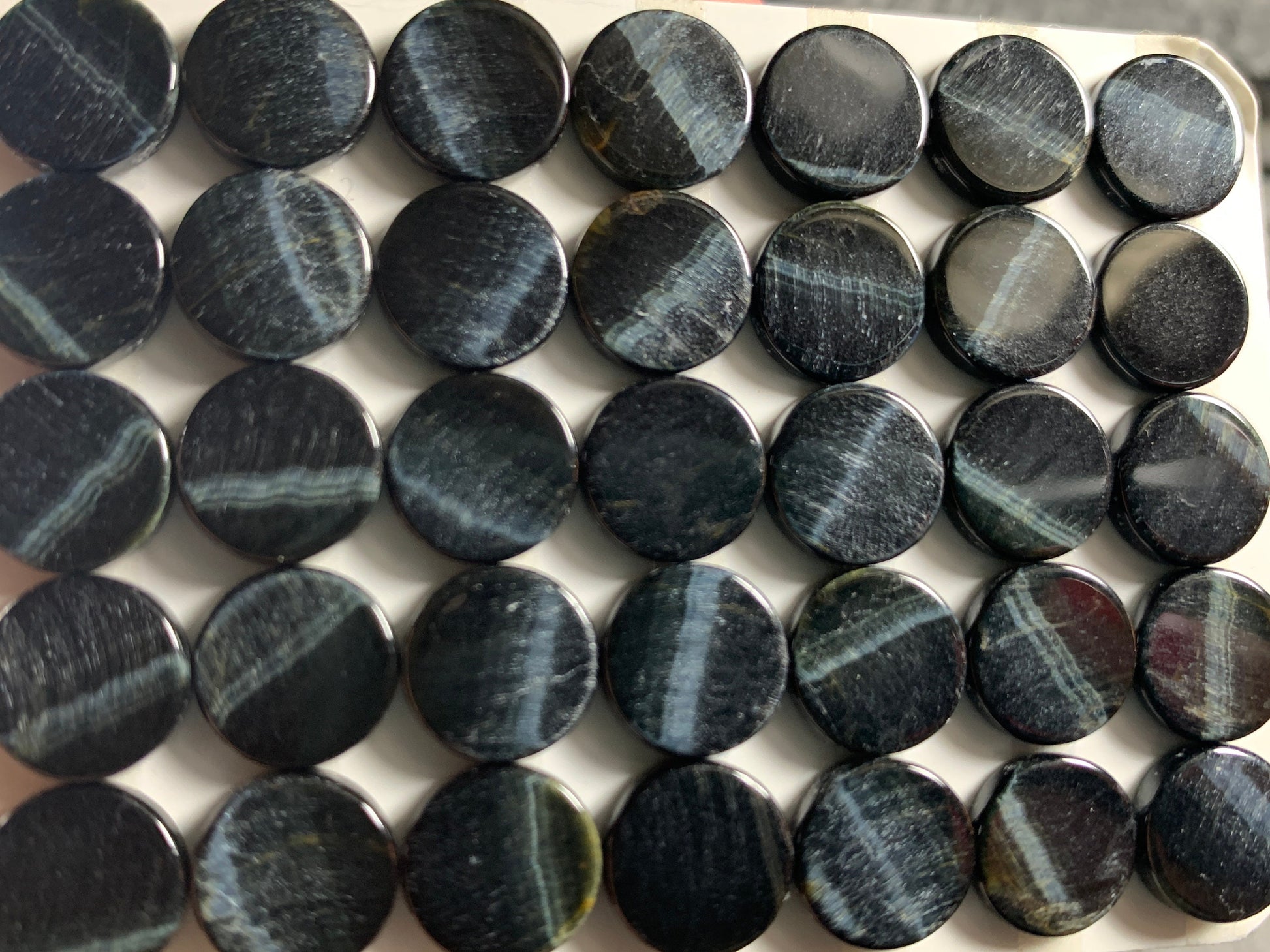 Flat Blue Tiger Eye round 10mm cabochon - Calibrated cabochons