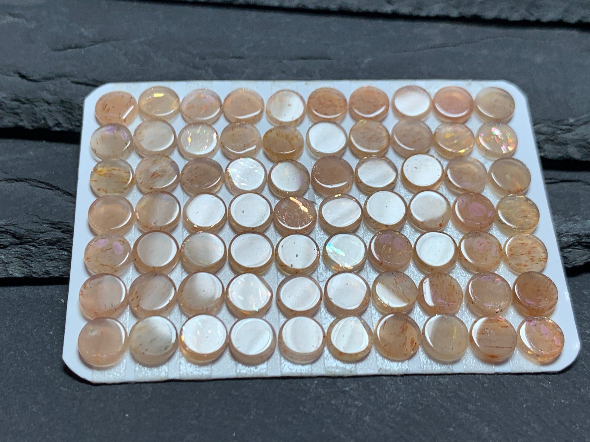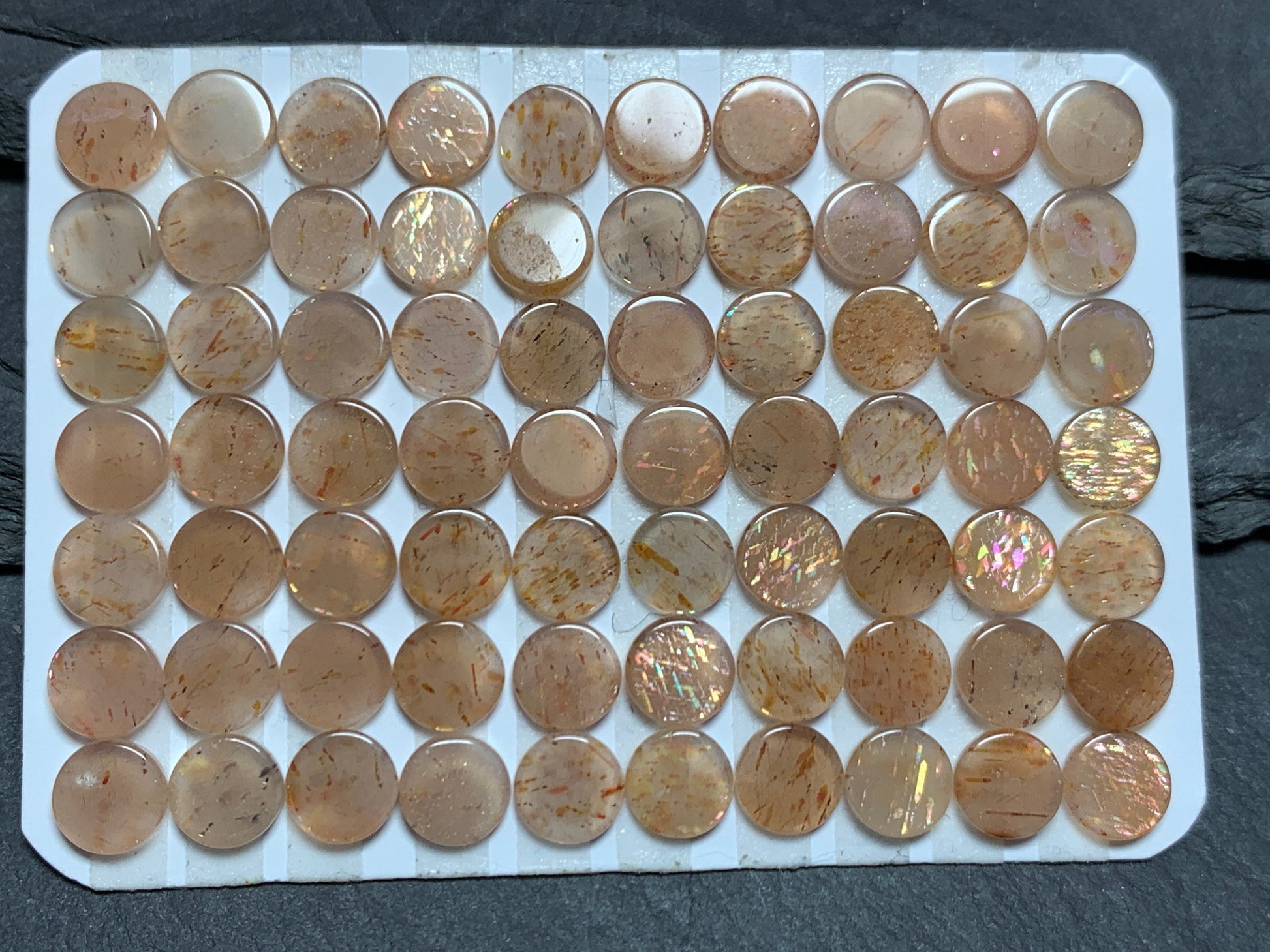 Flat Gold Sunstone round 6mm cabochon - Calibrated cabochons