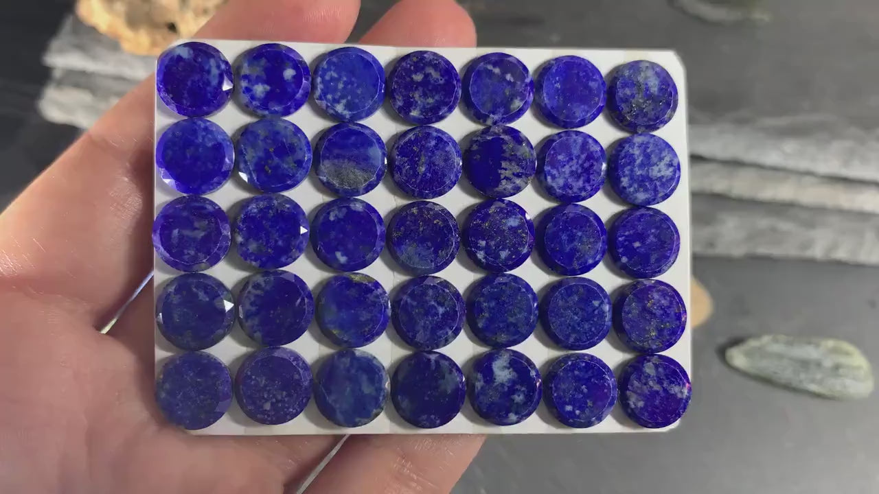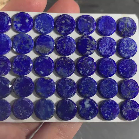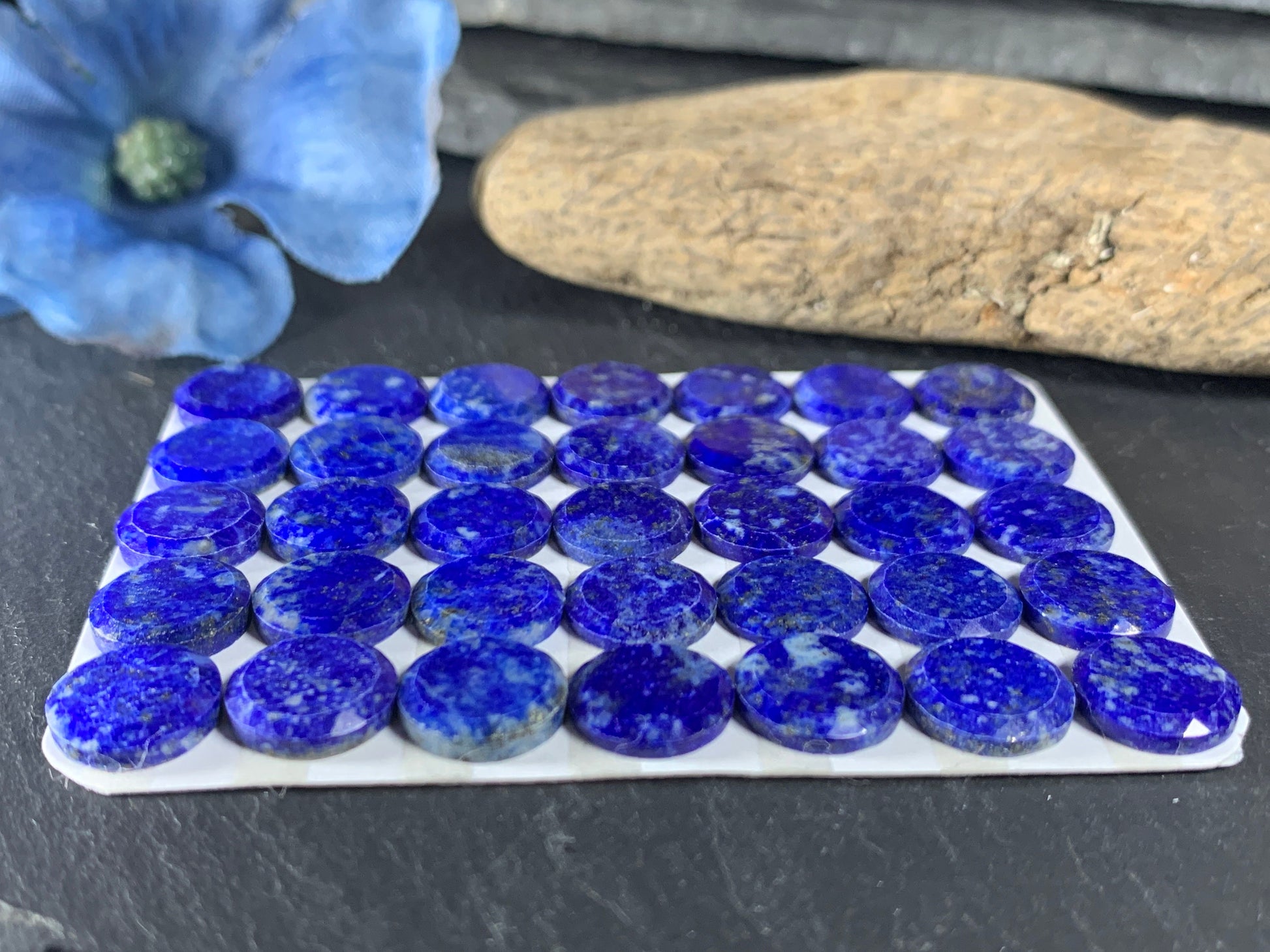 Flat Lapis Lazuli round 10mm cabochon with faceted edge - Calibrated cabochons