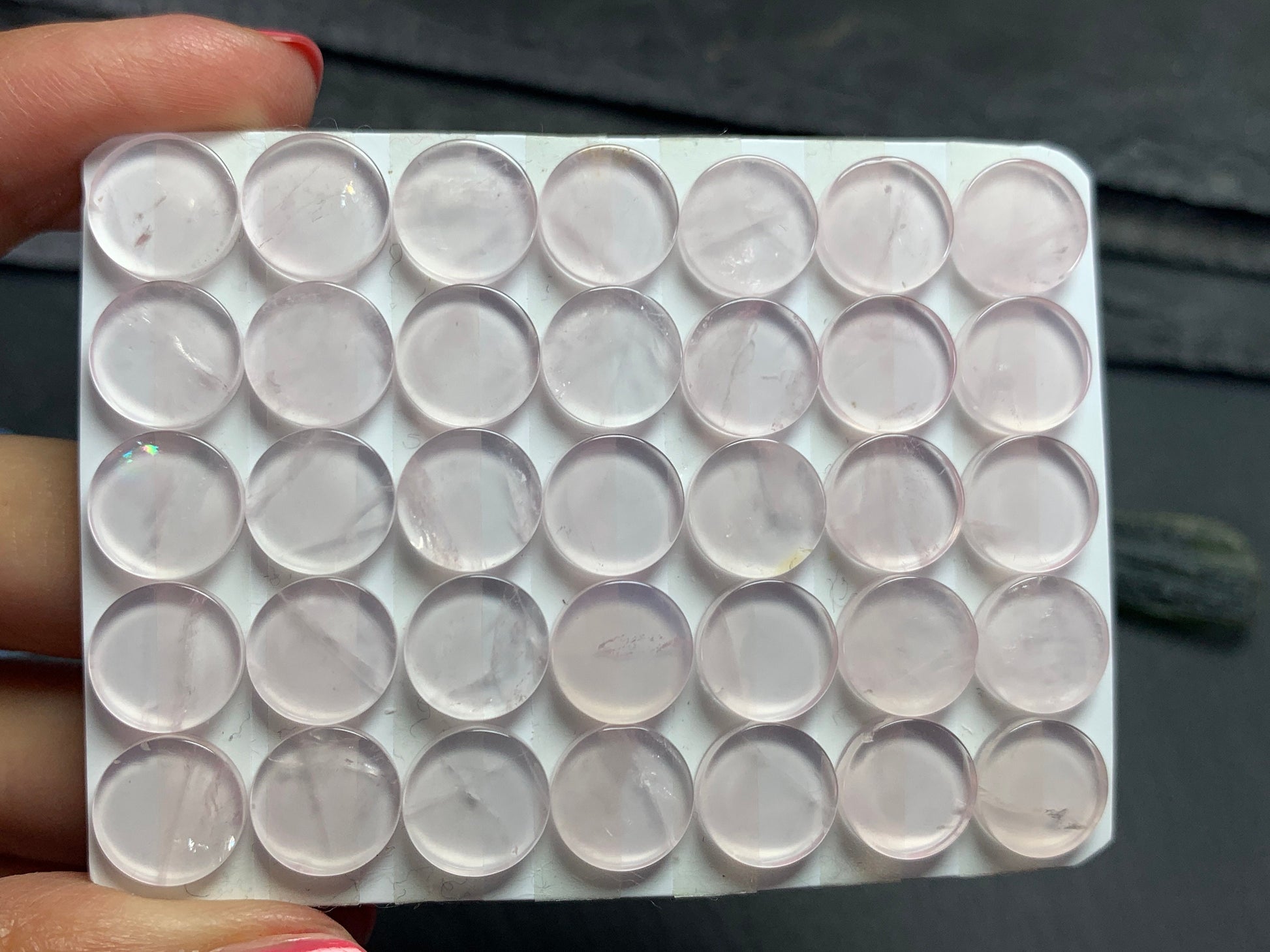Flat Rose Quartz round 10mm cabochon - Calibrated cabochons