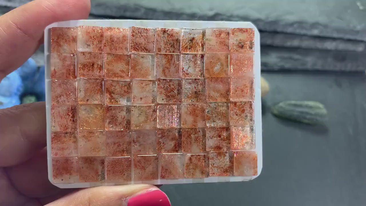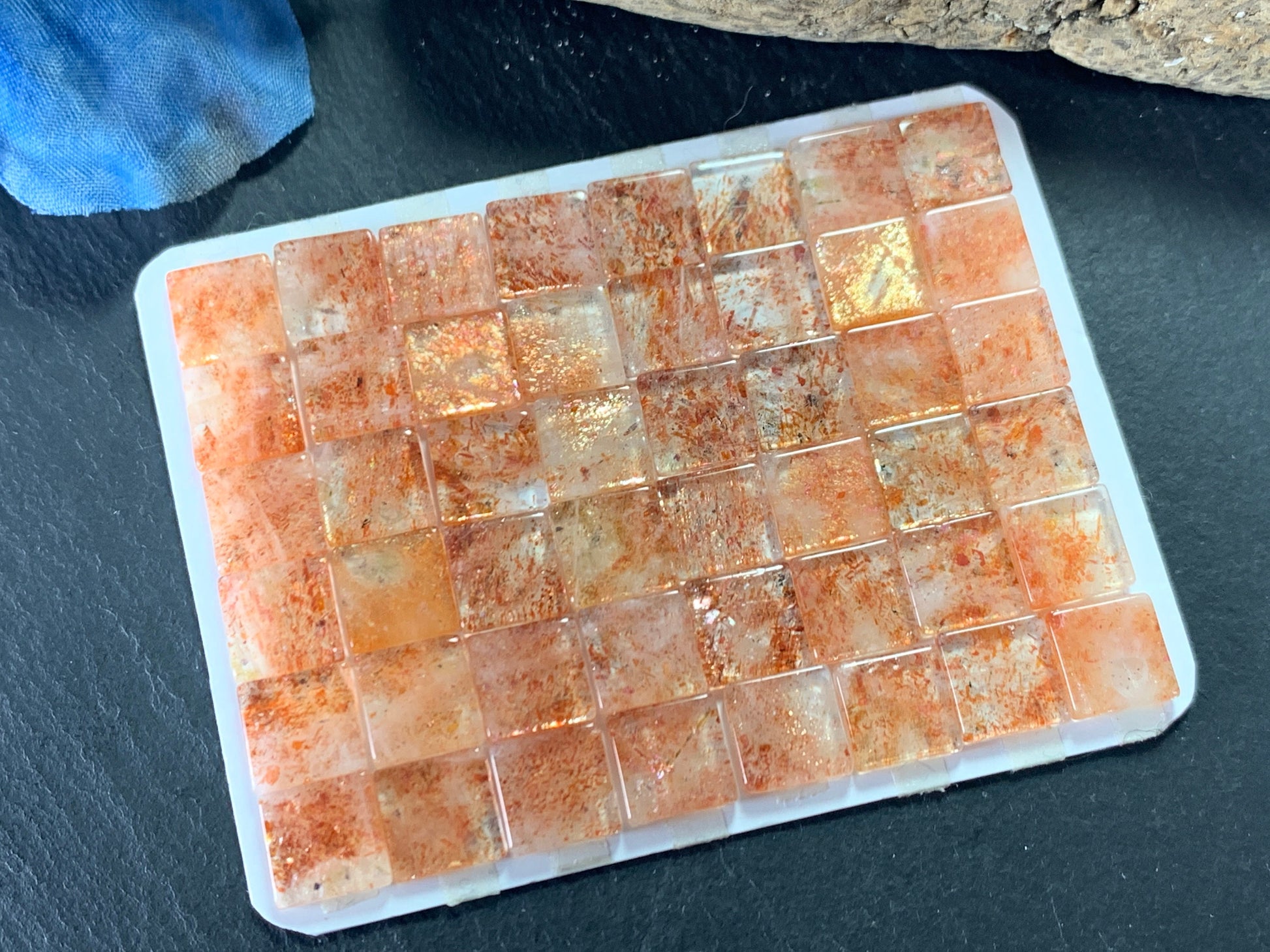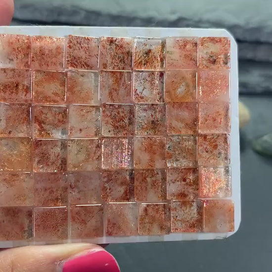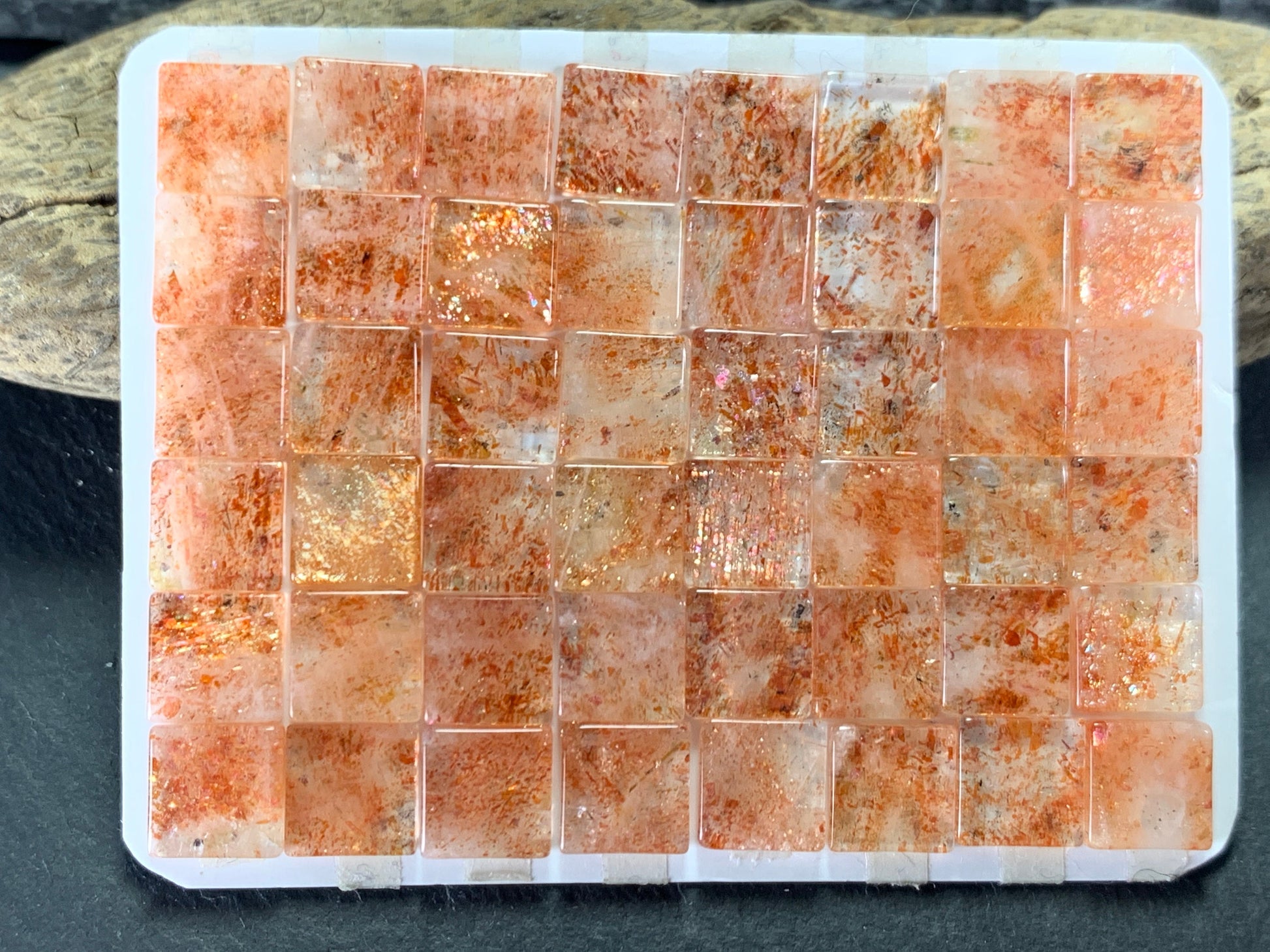 Flat Sunstone square 8mm cabochon - Calibrated cabochons