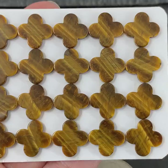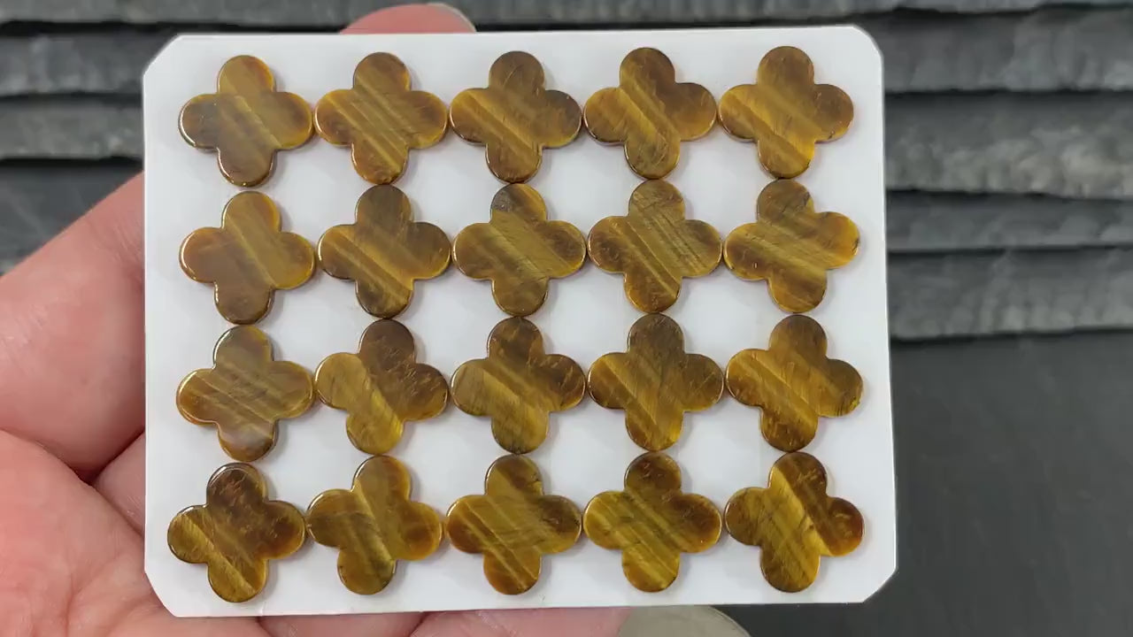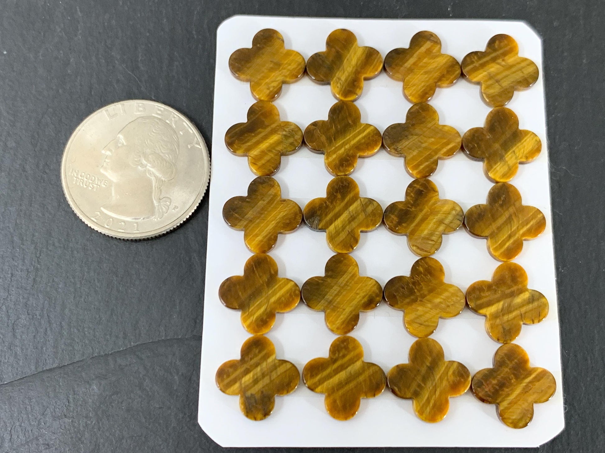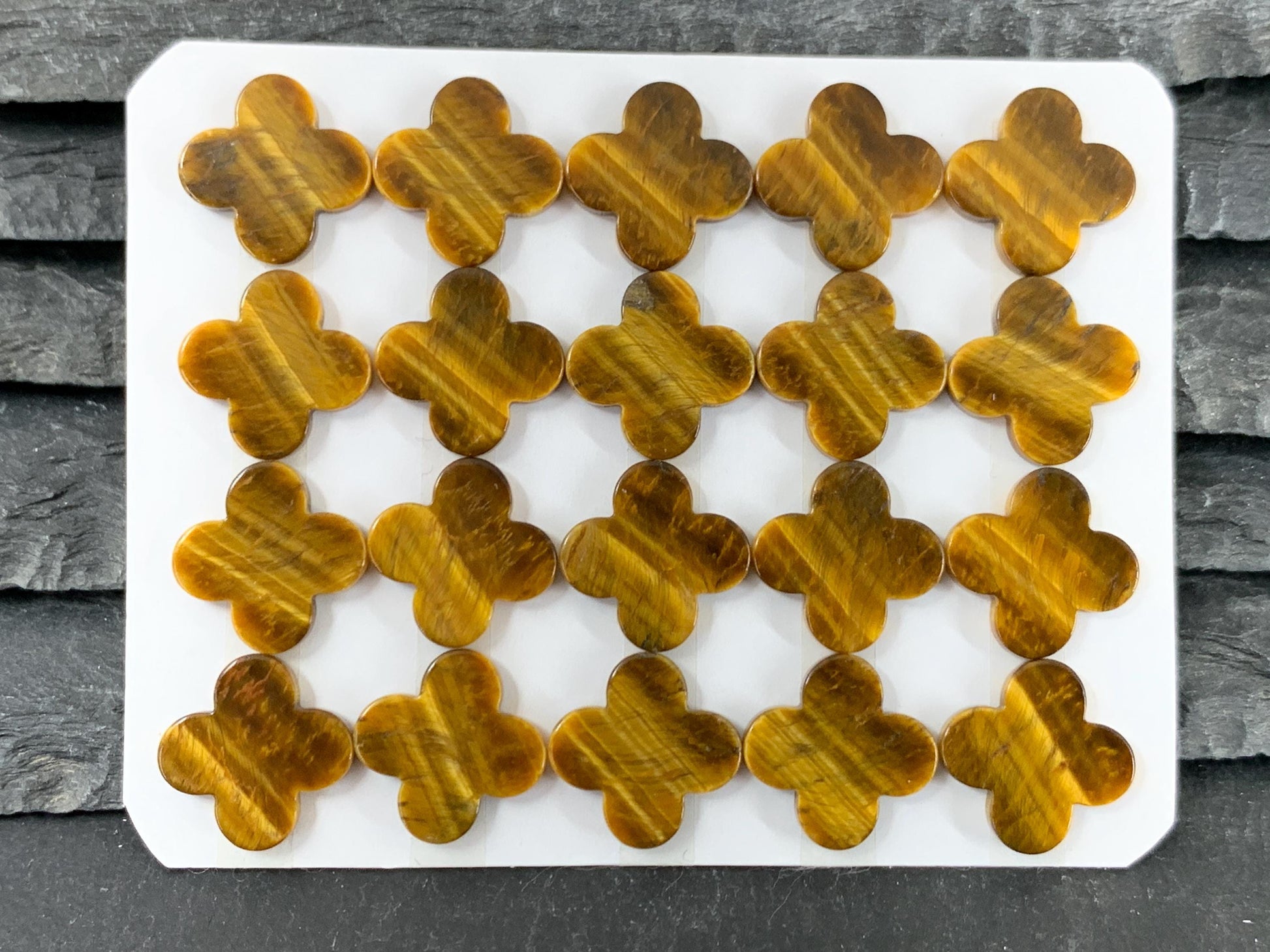 Flat Tiger Eye clover 13mm cabochon - Calibrated cabochons