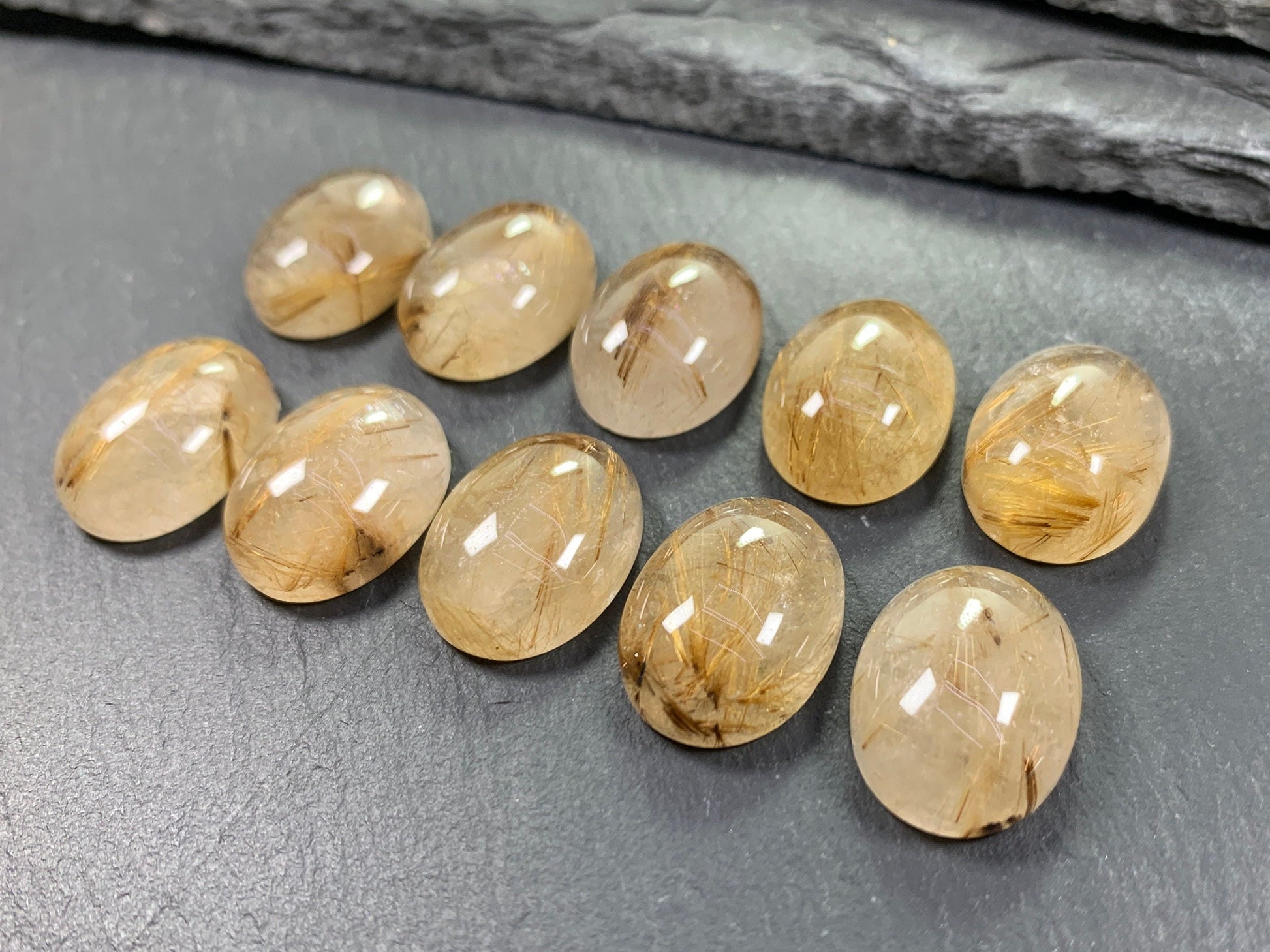 Gold Rutilated Quartz oval 13x18mm cabochon - Calibrated cabochons