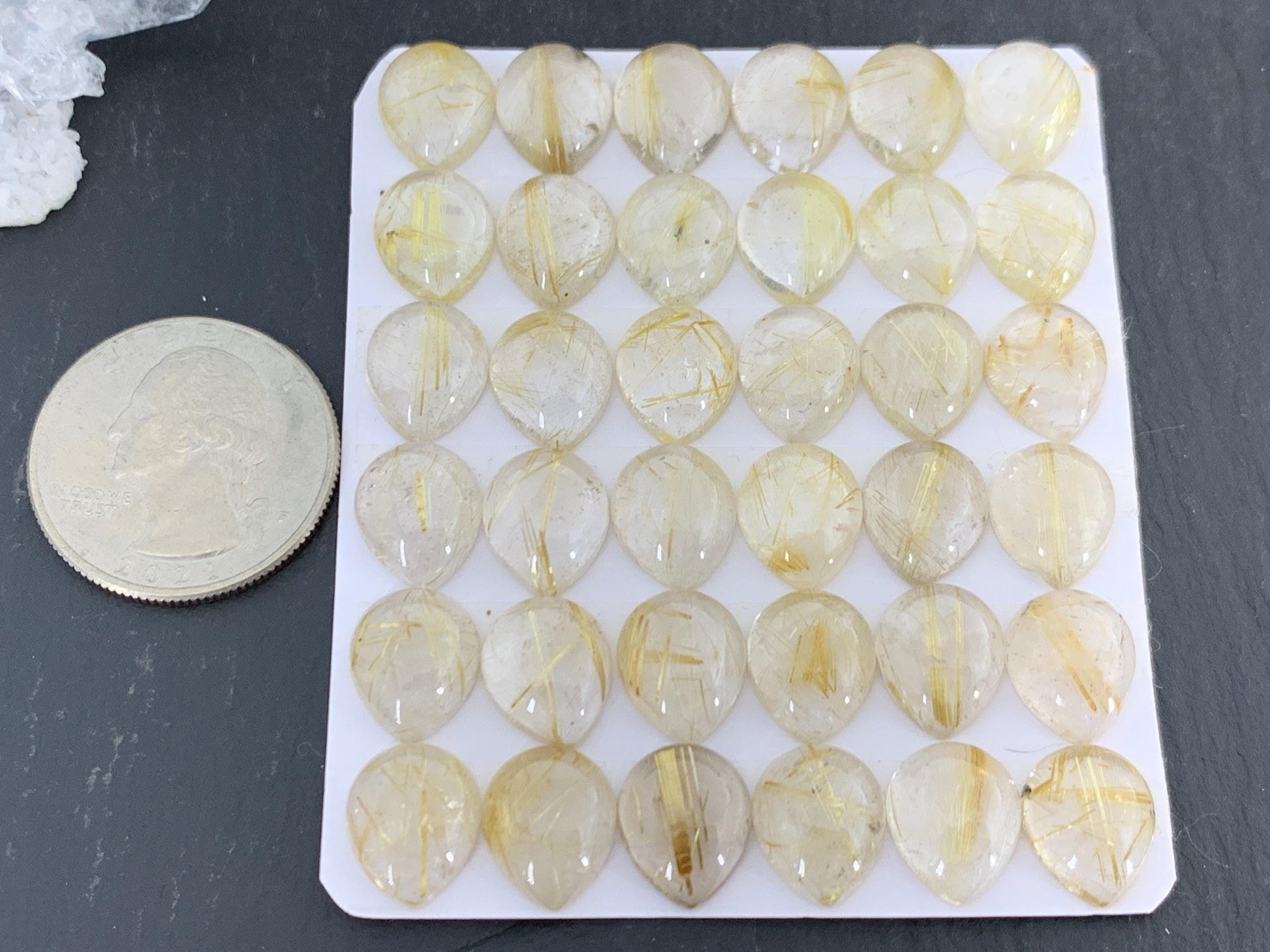 Gold Rutilated Quartz pear 10x12mm cabochon - Calibrated cabochons