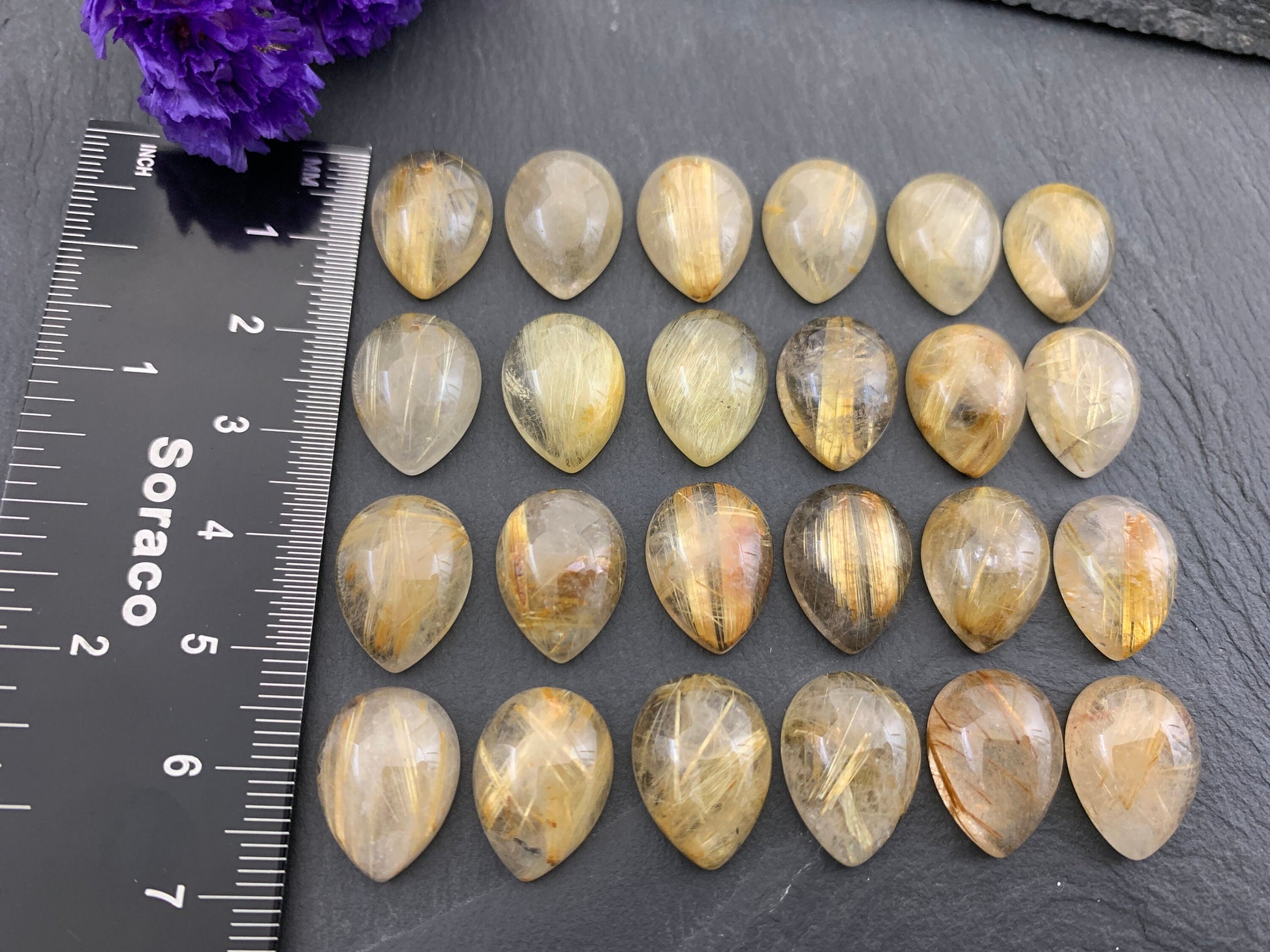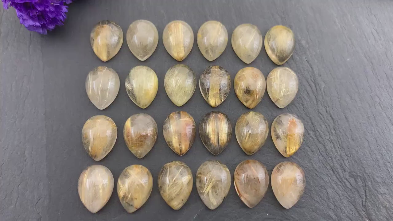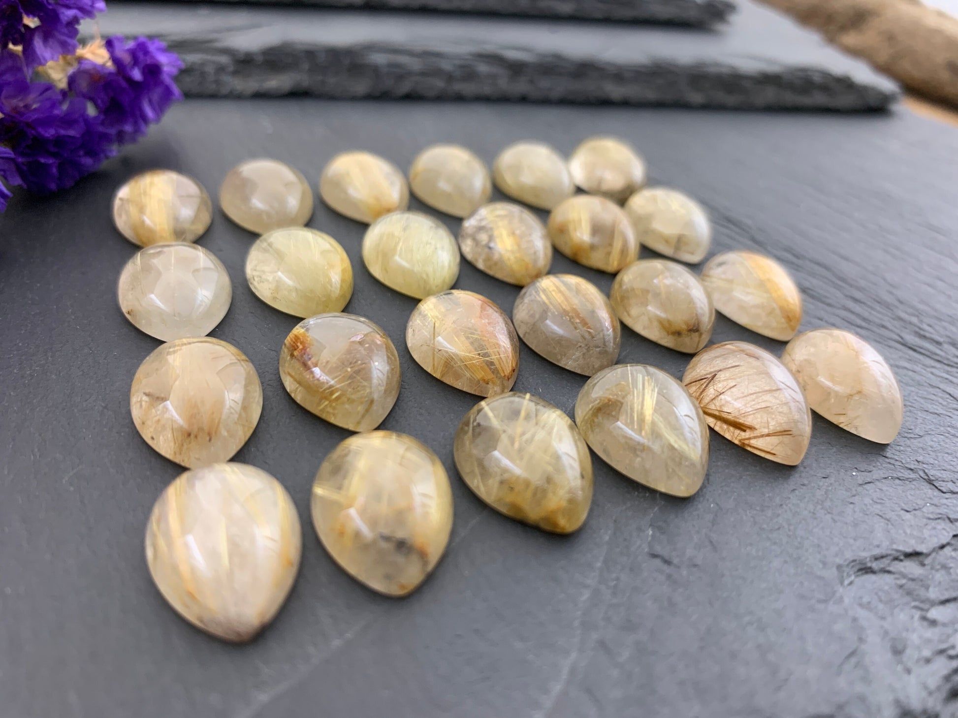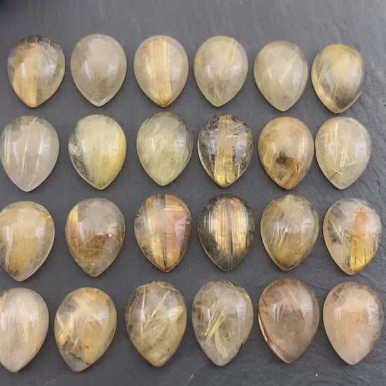 Gold Rutilated Quartz pear 12x16mm cabochon - Calibrated cabochons