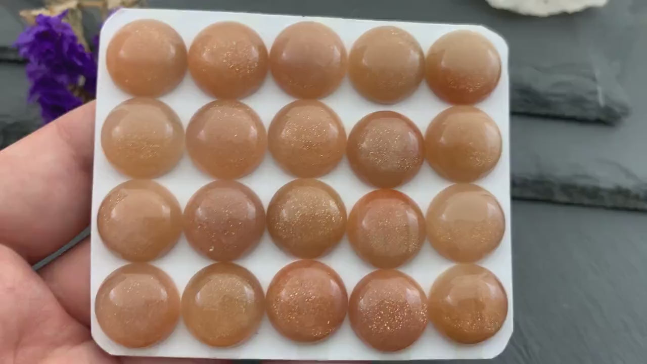 Gold Sunstone round 15mm cabochon - Calibrated cabochons