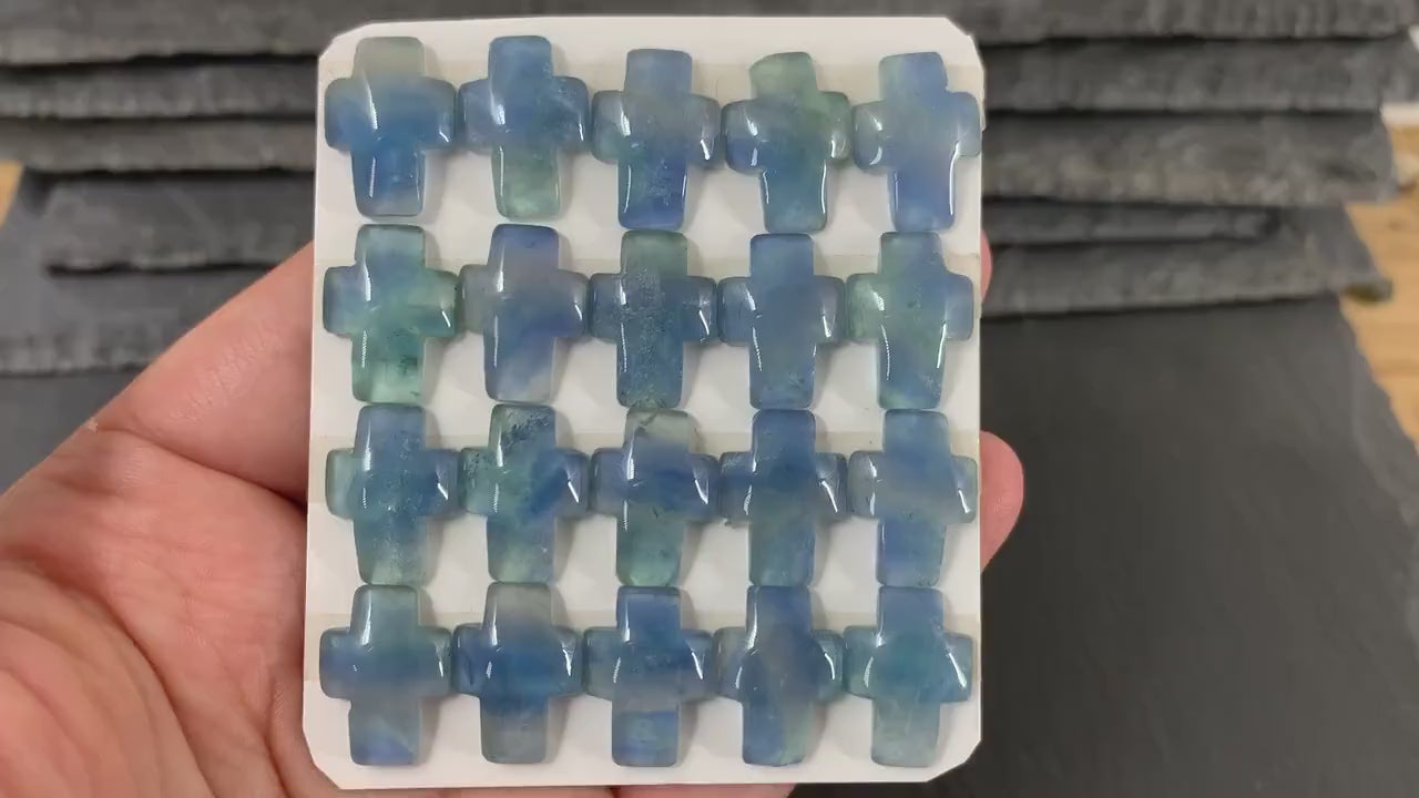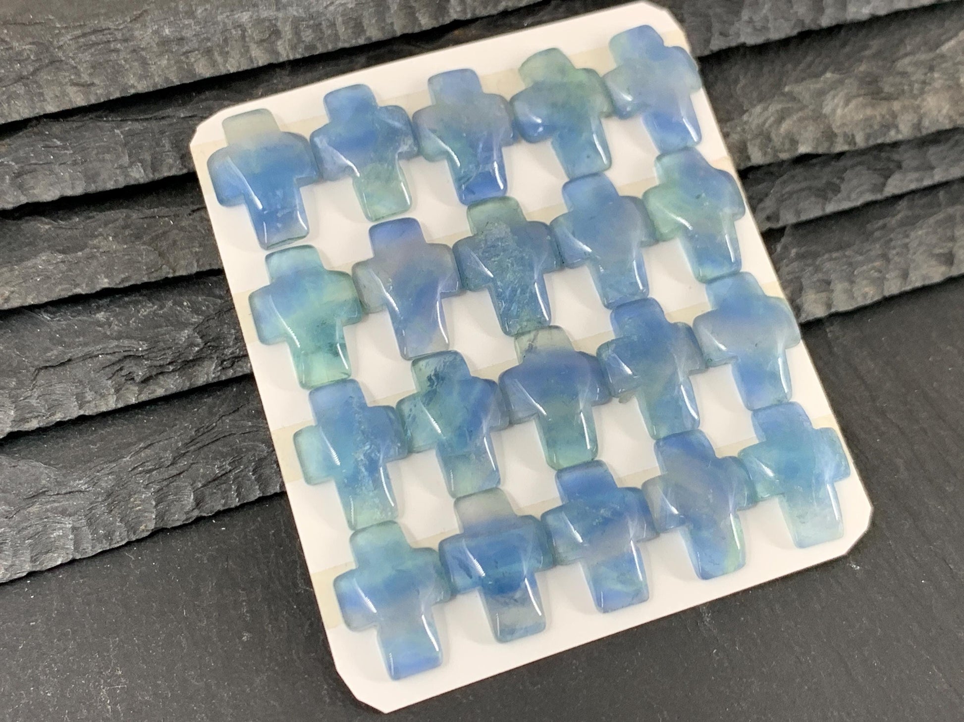 Green Fluorite cross 12x16mm cabochon - Calibrated cabochons