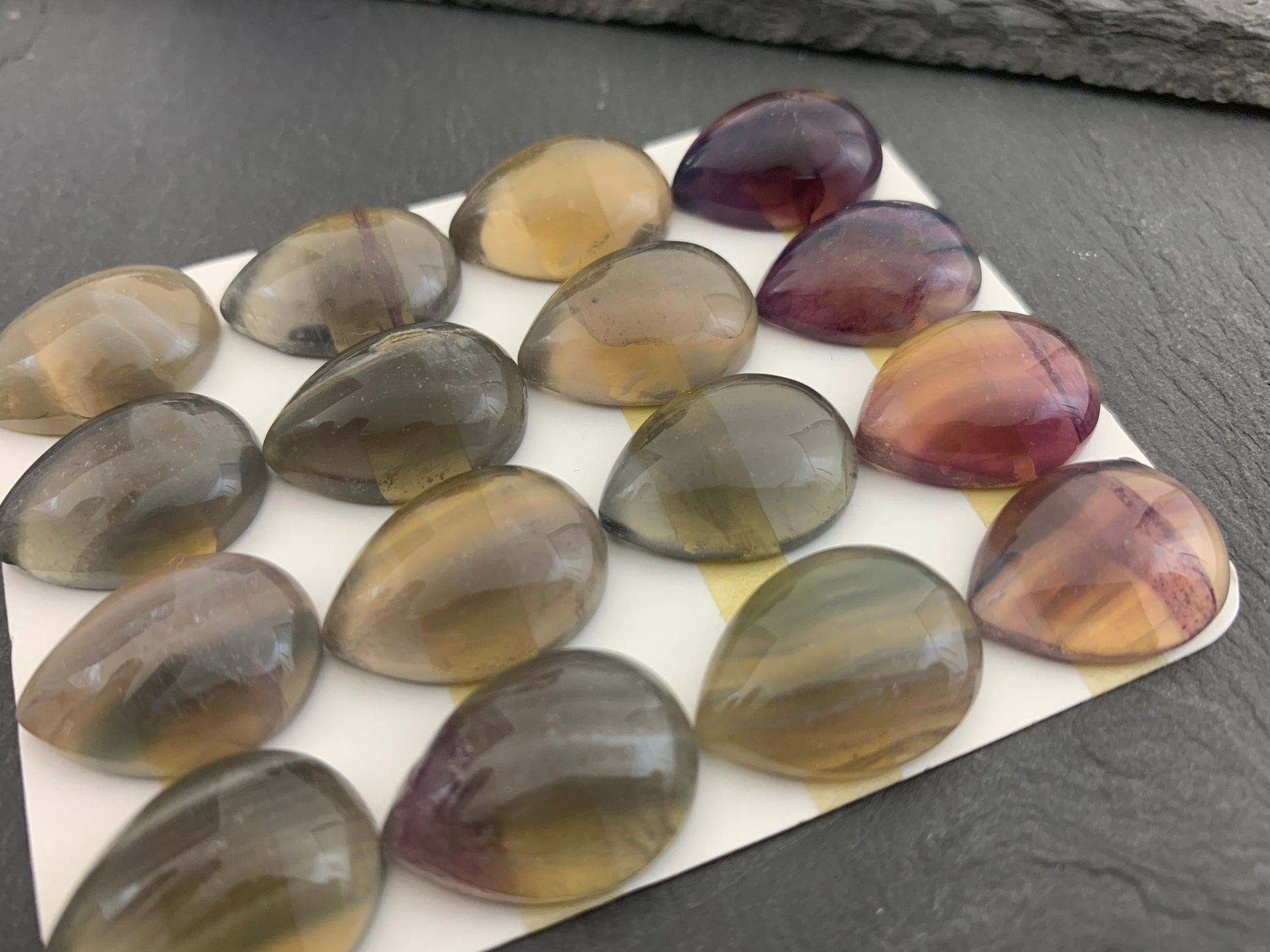 Green- Yellow Fluorite pear 15x20mm Cabochon - Calibrated cabochons