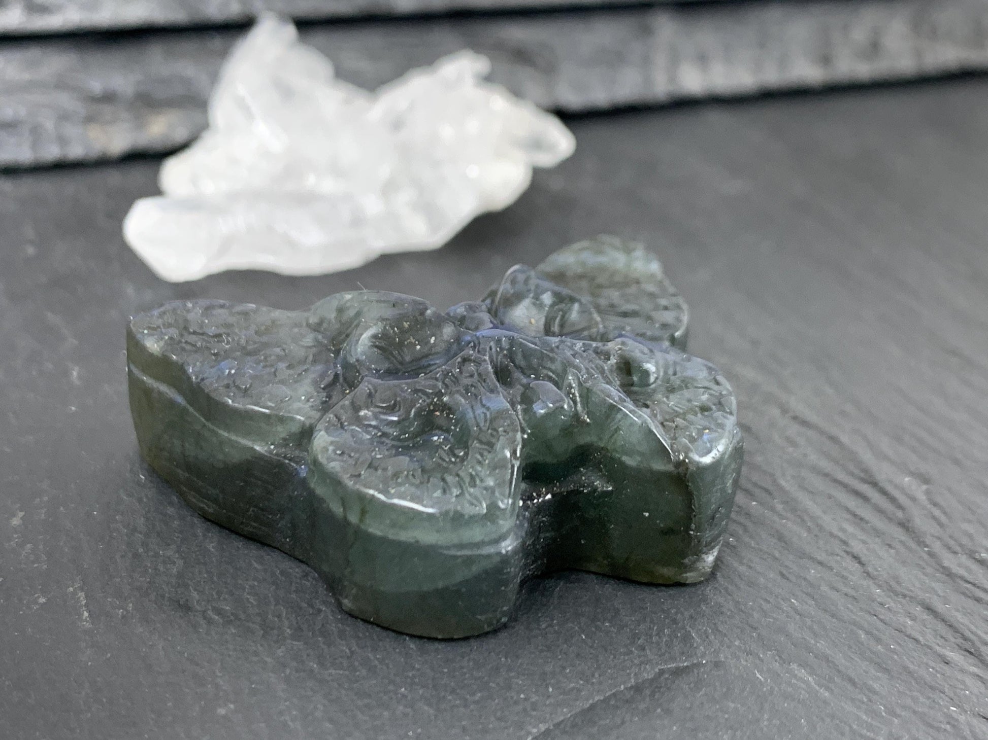 Please note that all pictures have been magnified to show intricate details clearly. The actual color of the labradorite butterfly carving may vary slightly from images due to lighting conditions during photography or monitor display differences. This natural gemstone carving is an excellent choice for artisans and collectors seeking a one-of-a-kind labradorite jewelry piece. Enhance your collection today with this exquisite flat back stone carving that combines artistry and natural beauty.