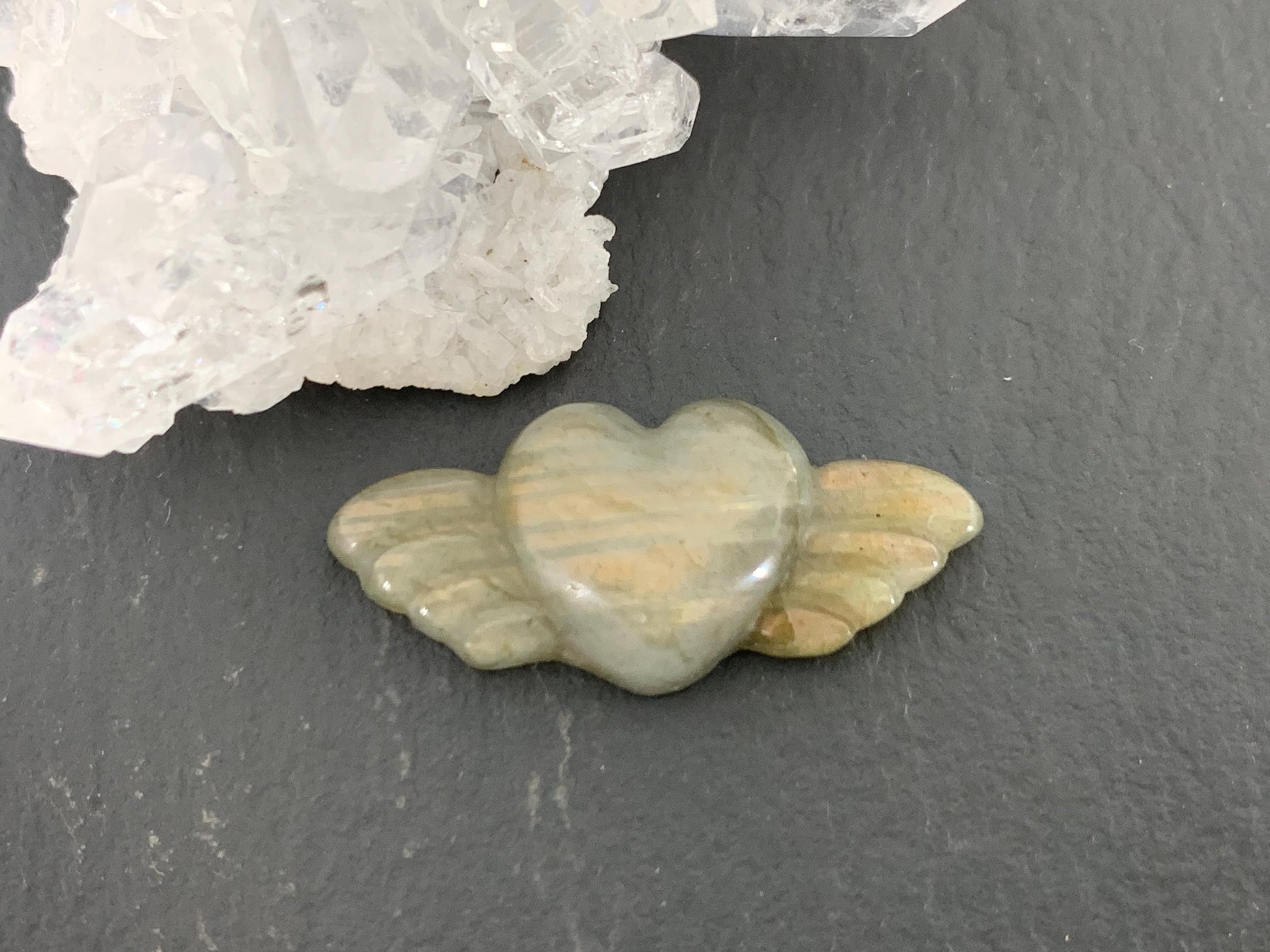 Labradorite Heart with Wings 25x10mm, Hand Carved Gemstone