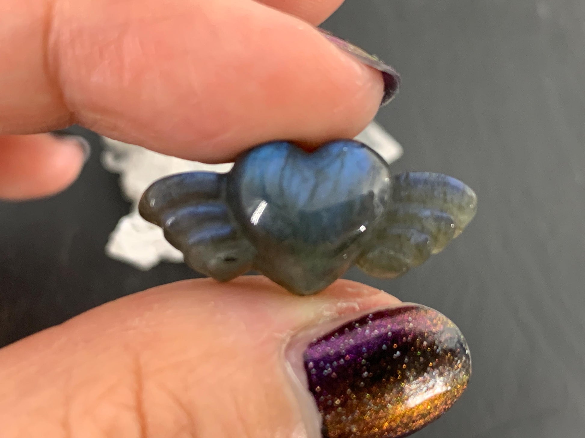 Labradorite Heart with Wings 25x11mm. Hand Carved Gemstone