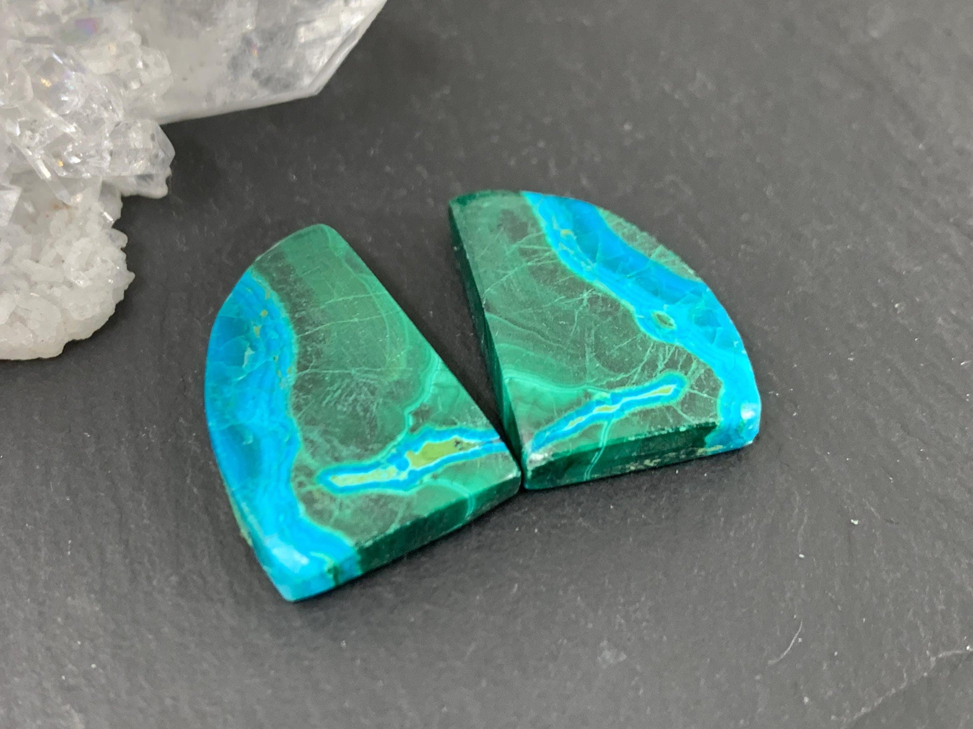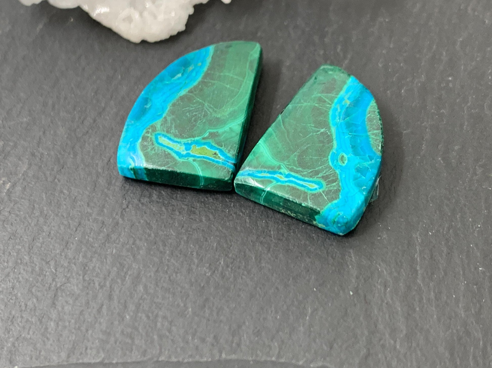 Malachite Chrysocolla free form 13x19x4mm cabochon pair
