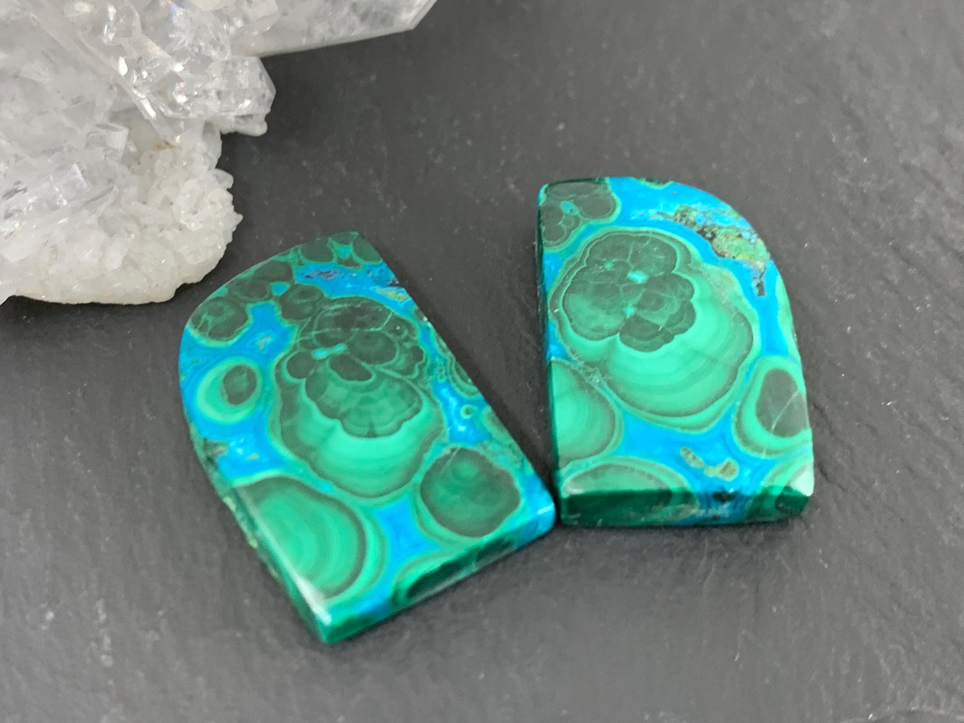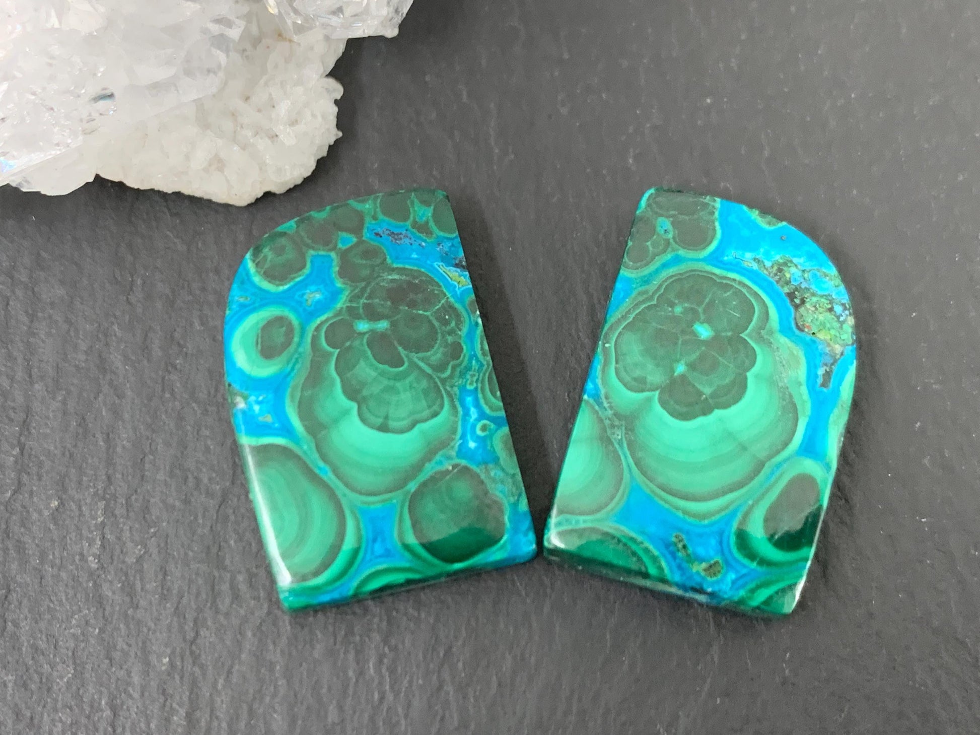 Malachite Chrysocolla free form 13x20x4mm cabochon pair