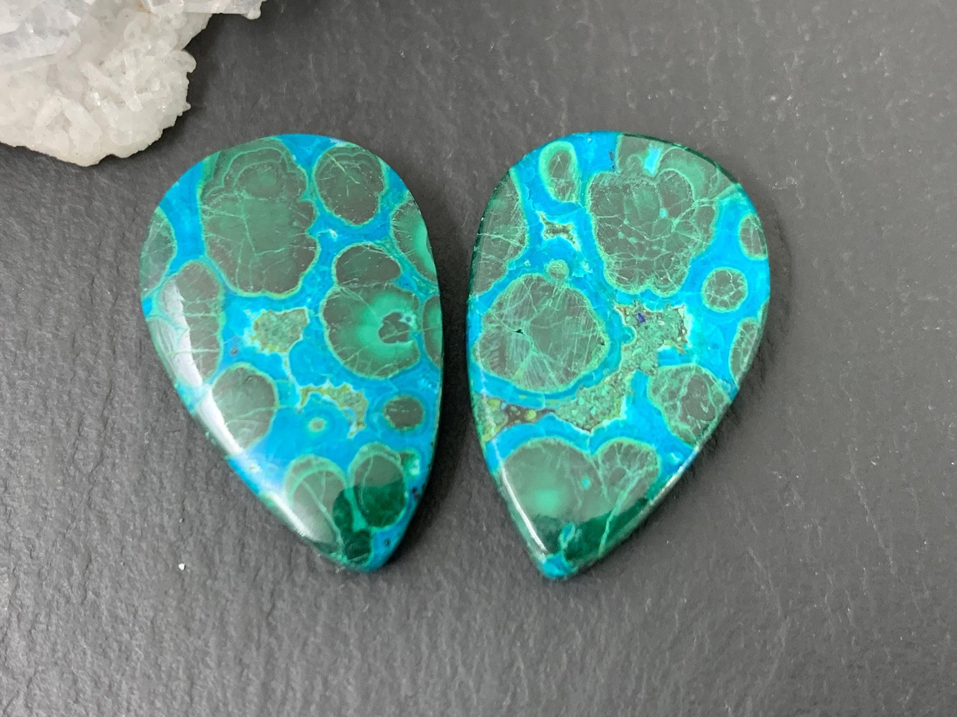 Malachite Chrysocolla pear 15x24x4mm cabochon pair