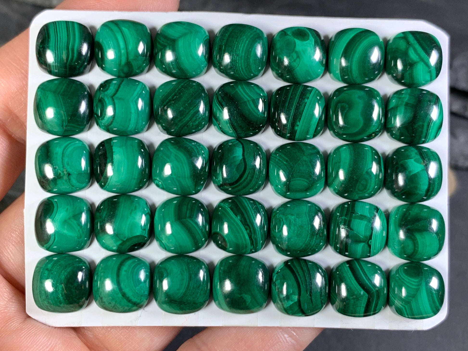 Malachite square cushion 10mm cabochon - Calibrated cabochons