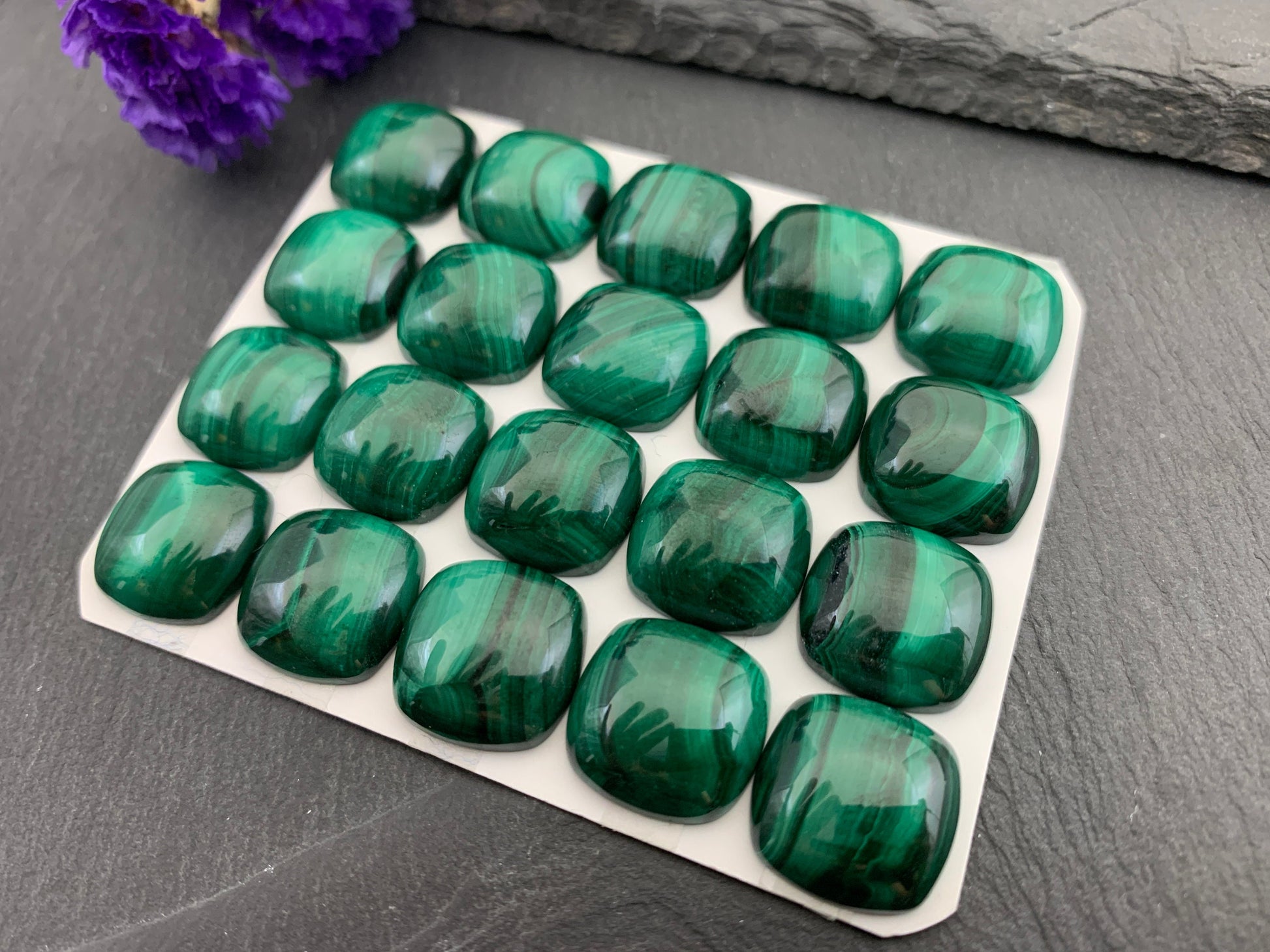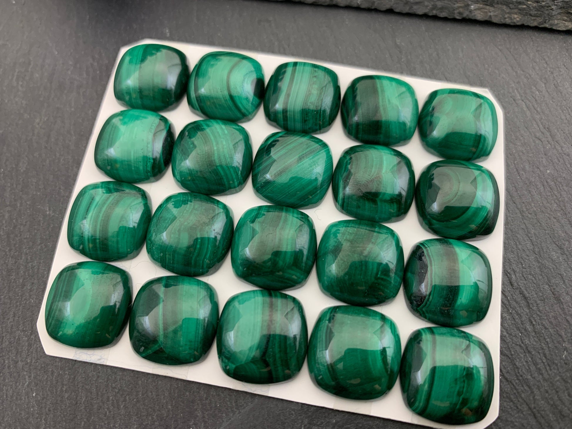 Malachite square cushion 15mm cabochon - Calibrated cabochons