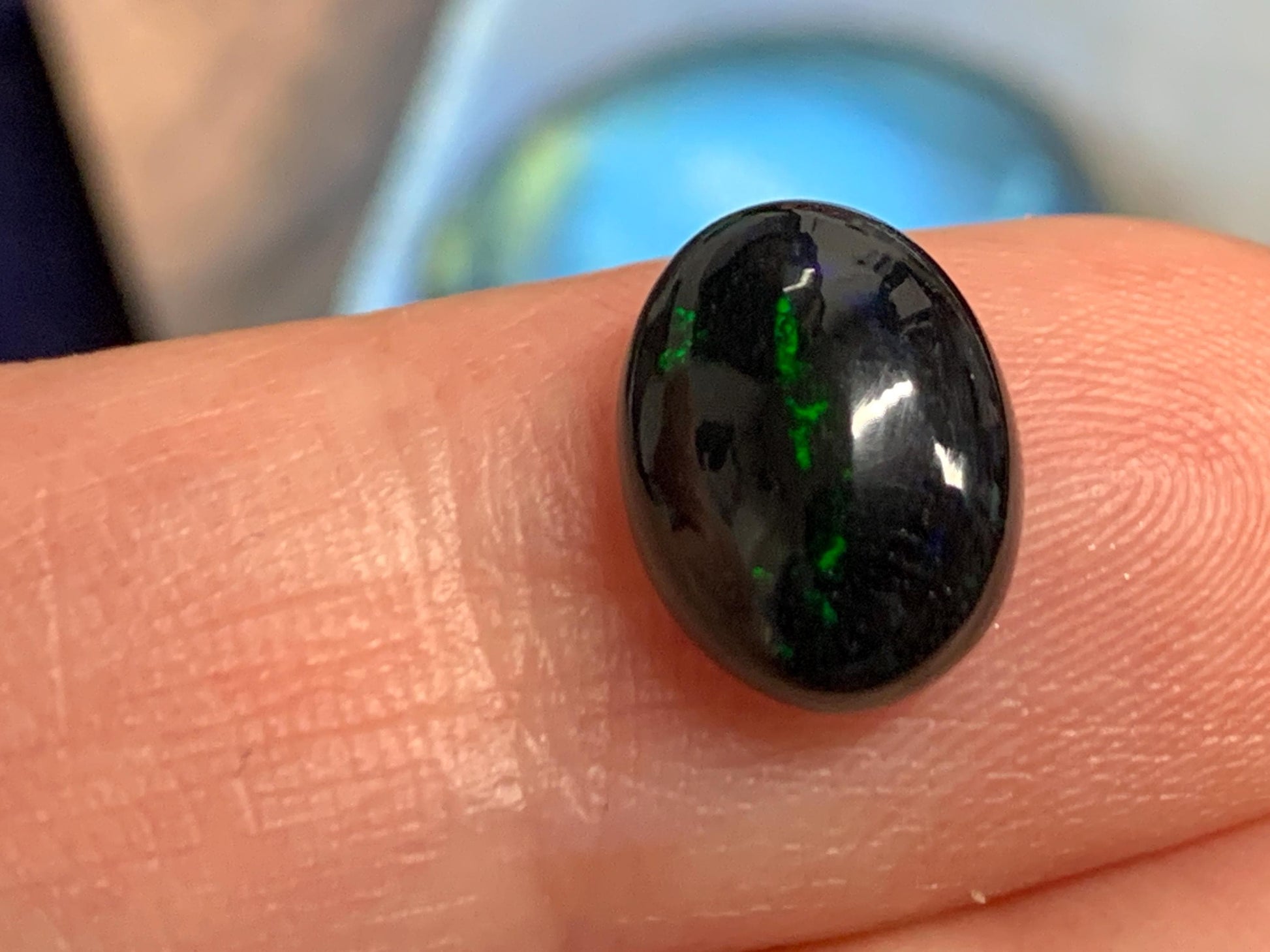 Natural Ethiopian Black Opal 8x11x4mm cabochon