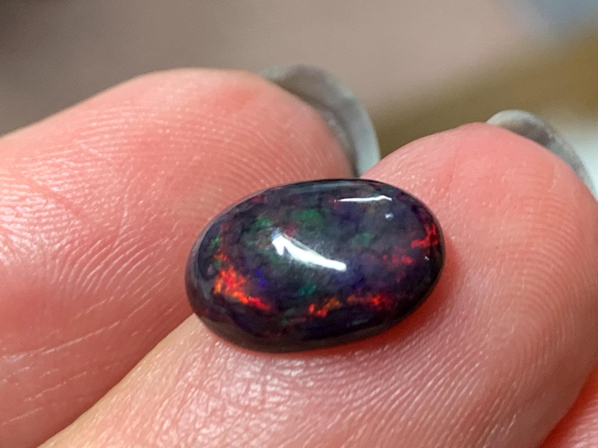 Natural Ethiopian Black Opal 9x11x5mm cabochon