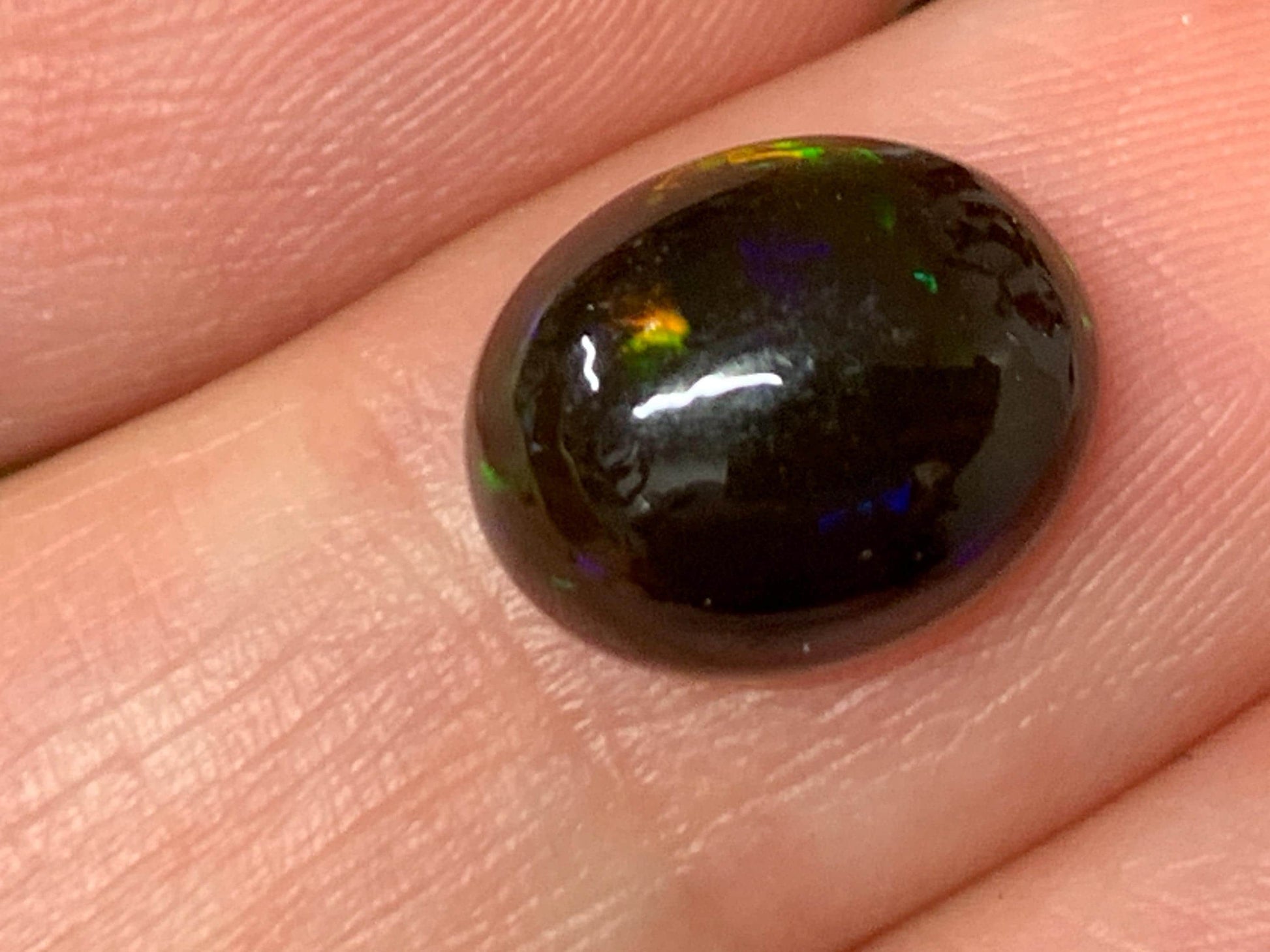 Natural Ethiopian Black Opal 9x11x5mm cabochon