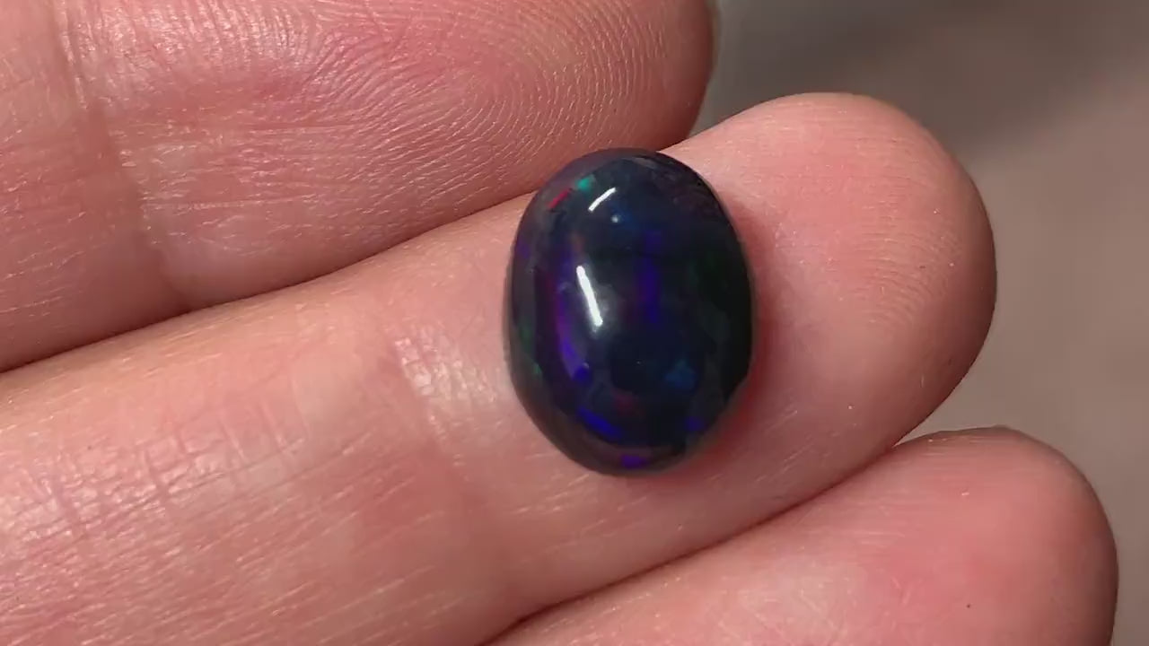 Black Ethiopian Opal oval 9x11x4mm cabochon